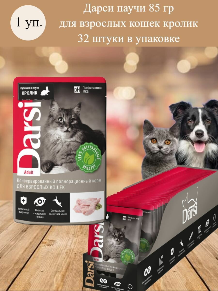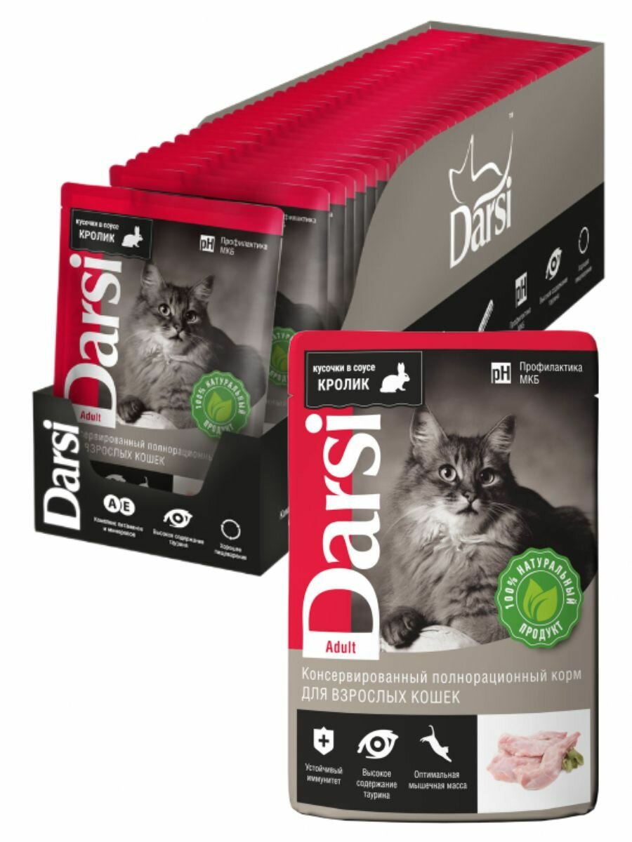 Влажный корм для кошек Darsi Adult, профилактика МКБ, с кроликом 32 шт. х 85 г (кусочки в соусе)