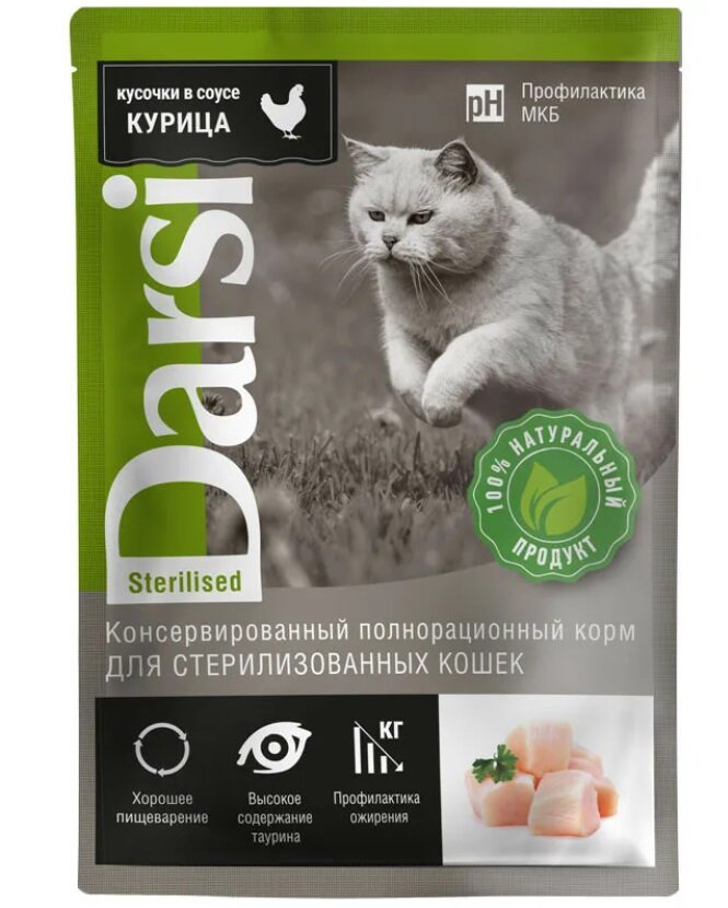 Корм Darsi (кусочки в соусе) для стерилизованных кошек "Говядина", 250 г x 12 шт