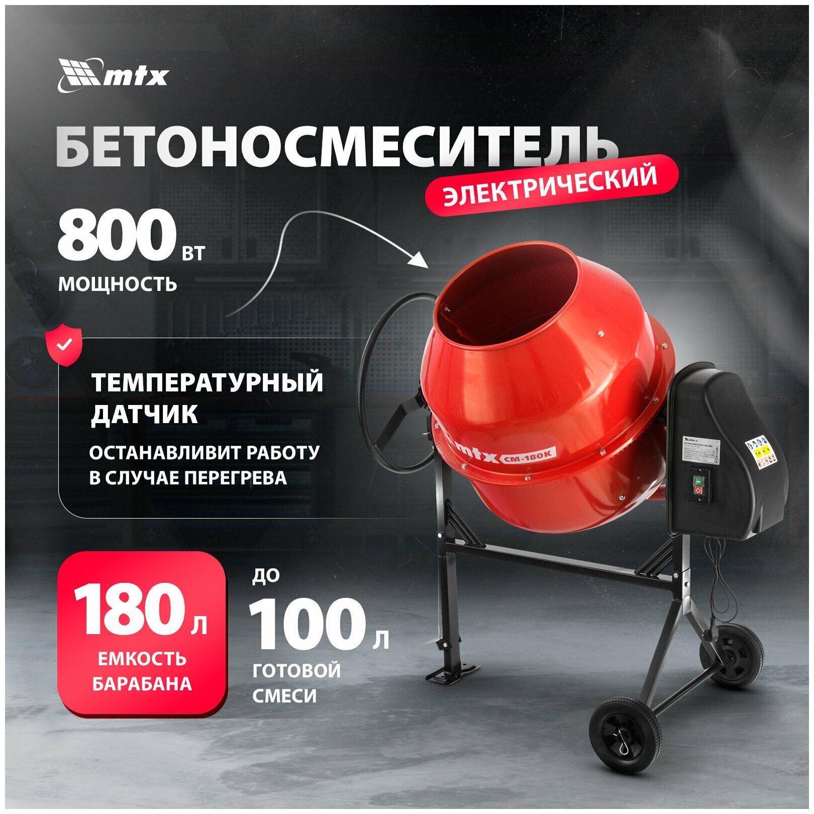 Бетономешалка МТХ, СМ-180K, 180 л, мощность 800 Вт, 95484