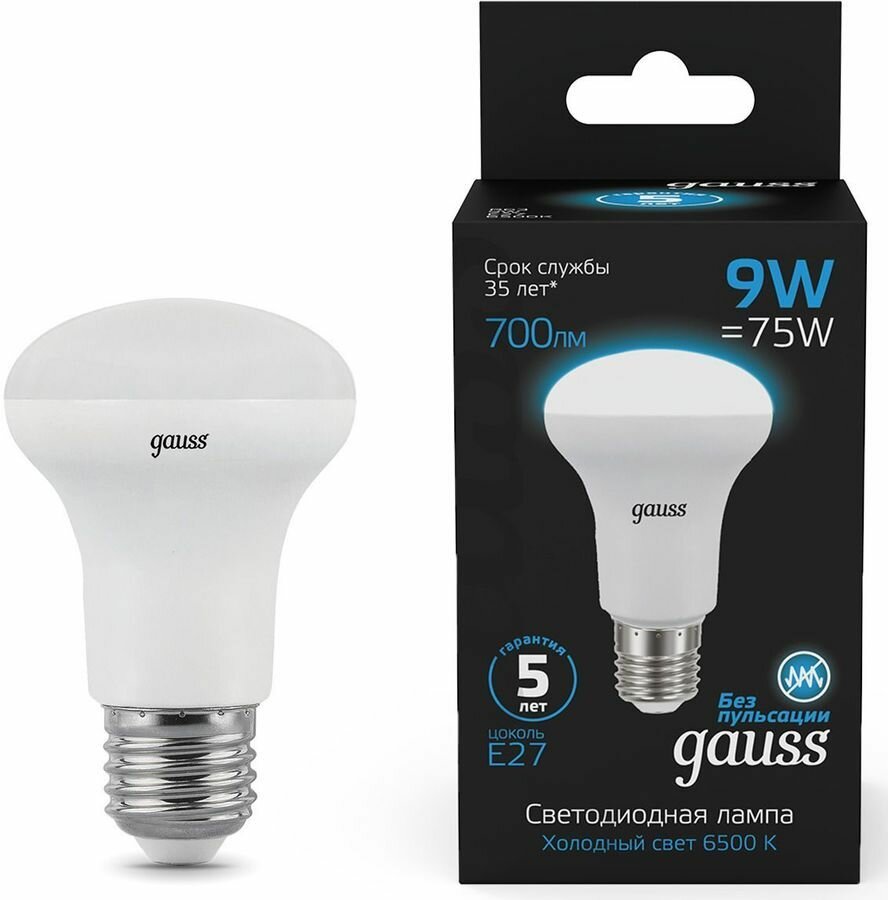 Светодиодная лампа Gauss R63 9W 700lm 6500K E27 LED 1/10/50