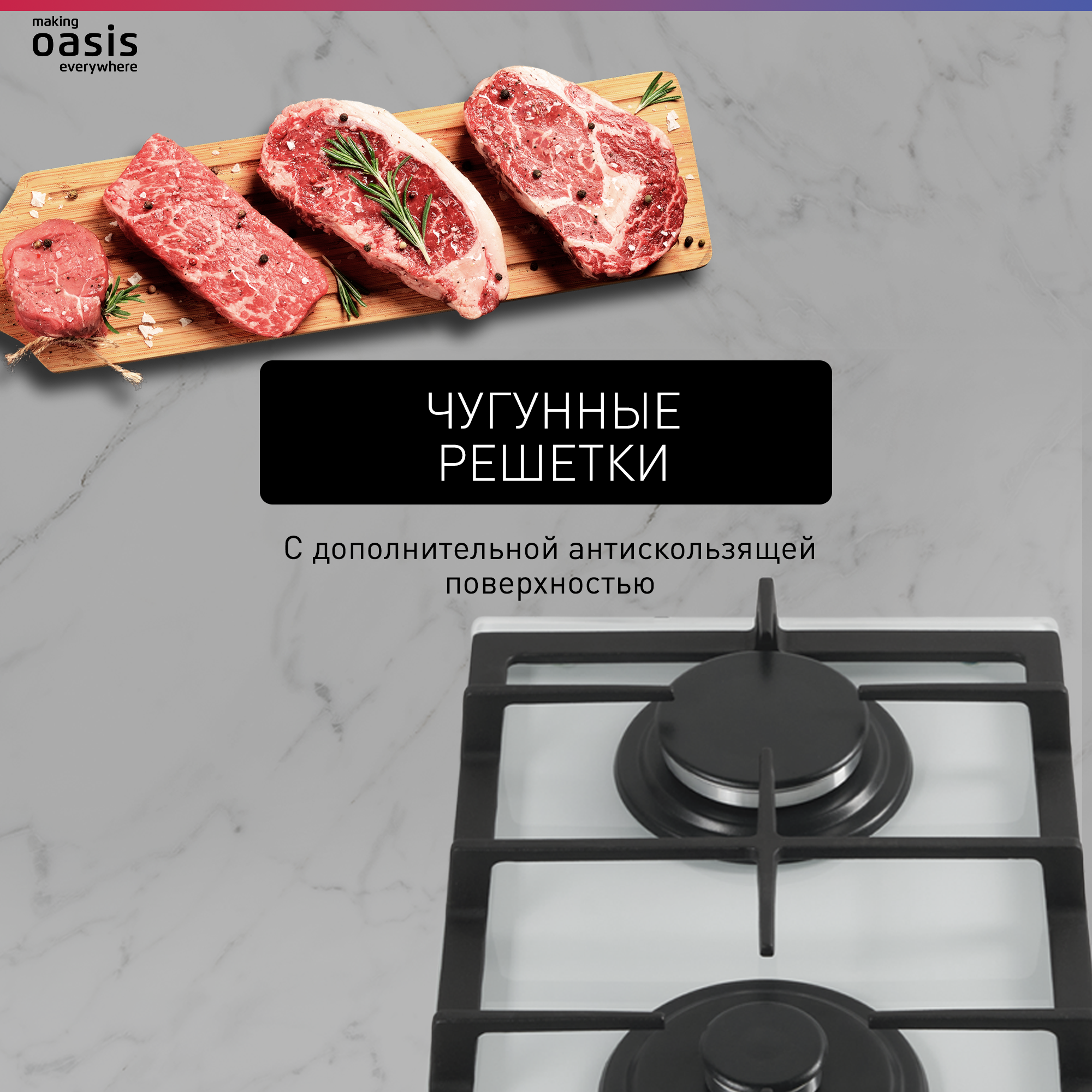 Газовая варочная панель OASIS P-GWD (F), стекло белое