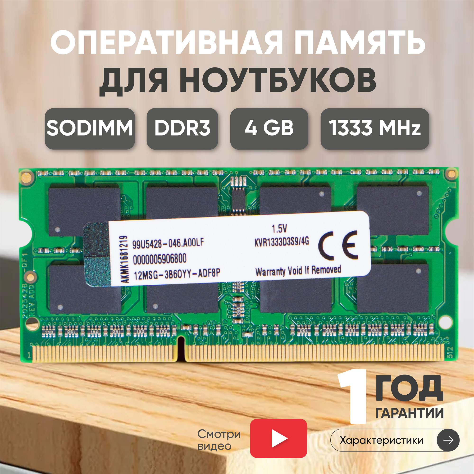 Модуль памяти Kingston SODIMM DDR3, 4ГБ, 1333МГц, 1.5В, 204PIN, PC3-10600