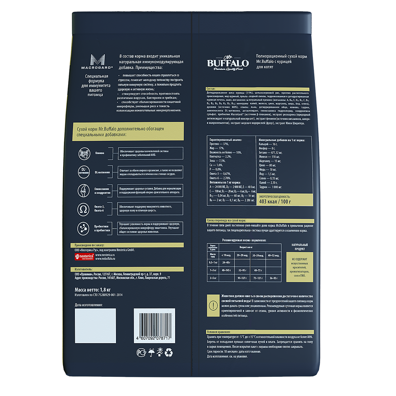 Сухой корм Мистер Бафало для Котят Курица 1,8 кг
