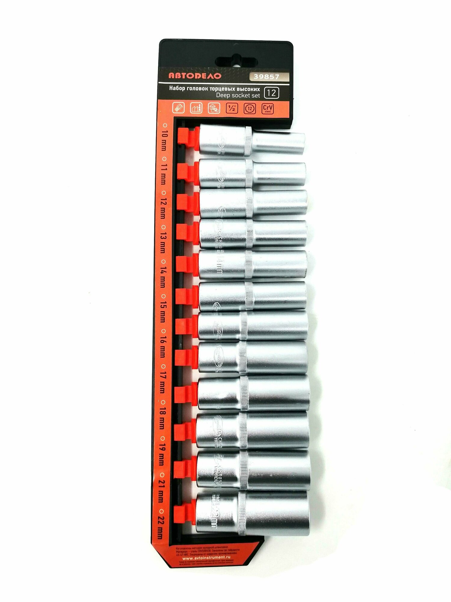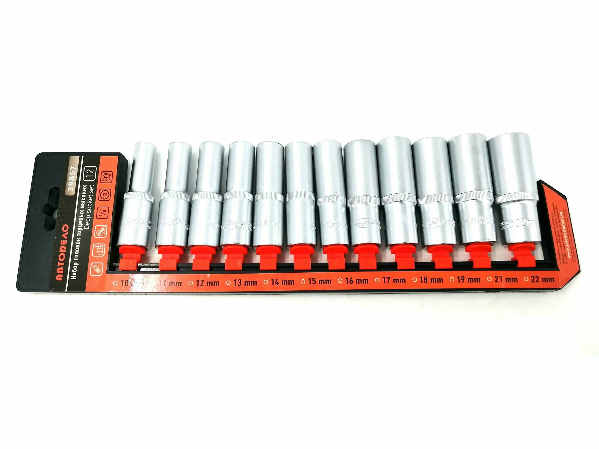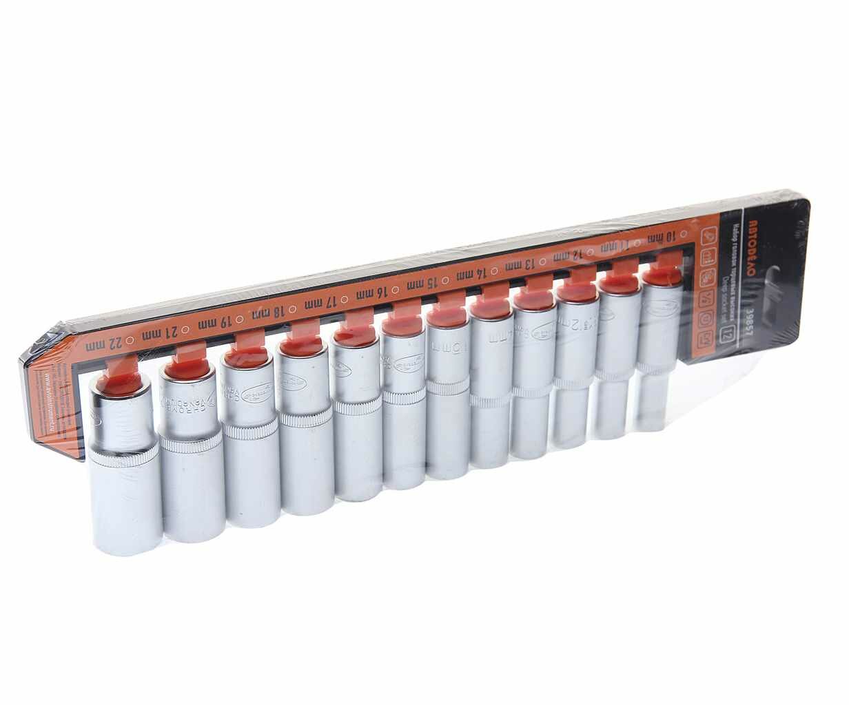 Набор головок глубоких 1/2" 12 пр. 12 гр. 10-22 мм на держателе АвтоДело автодело 39857 | цена за 1 шт