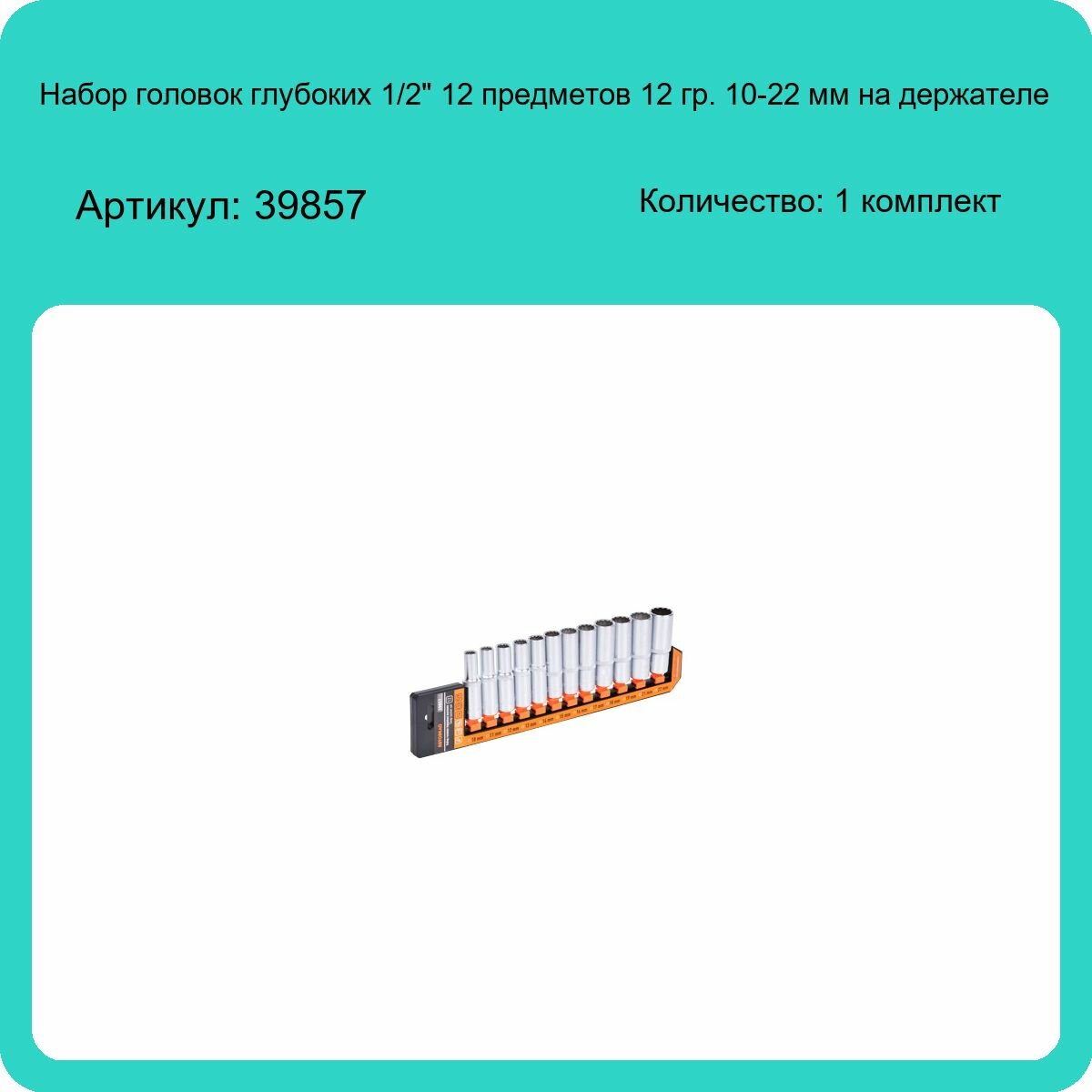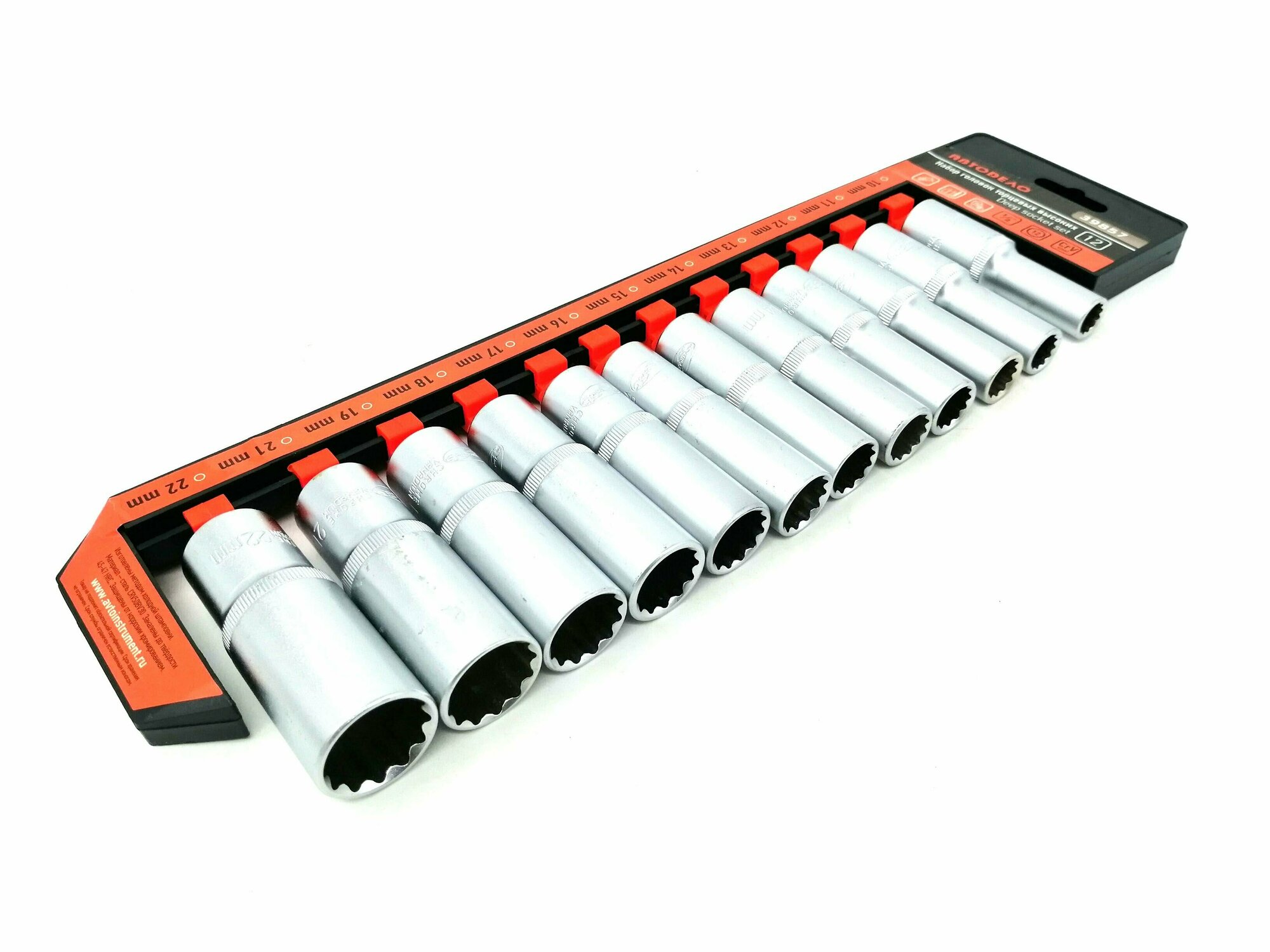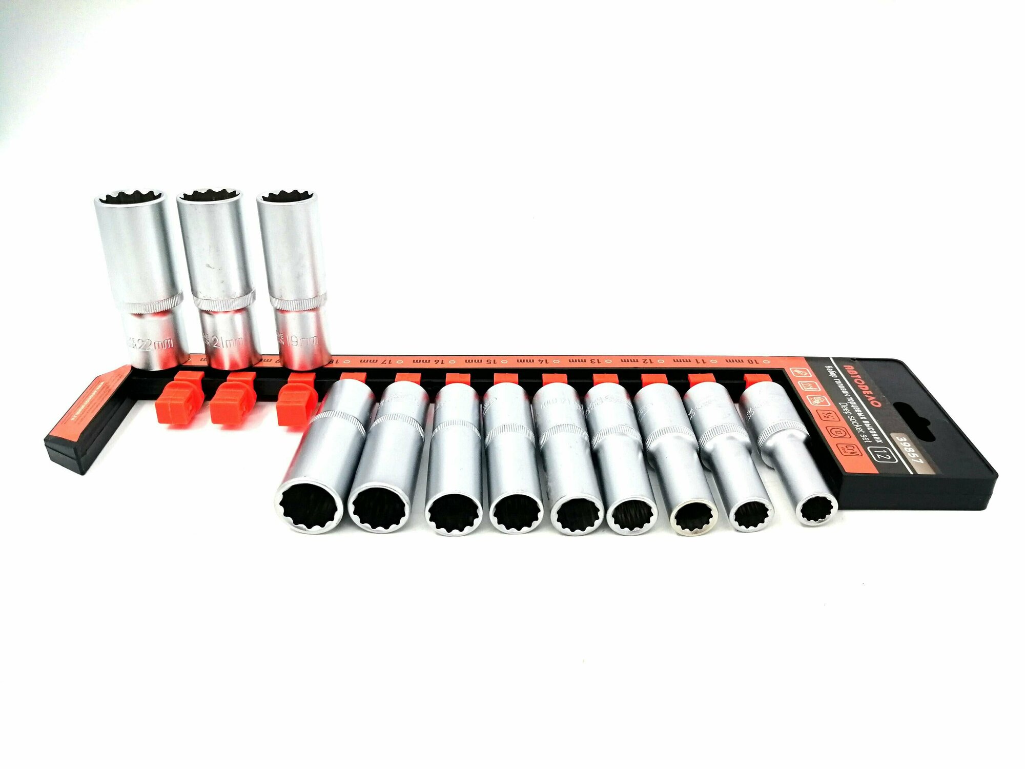 Набор головок глубоких 1/2" 12 пр. 12 гр. 10-22 мм на держателе АвтоДело автодело 39857 | цена за 1 шт