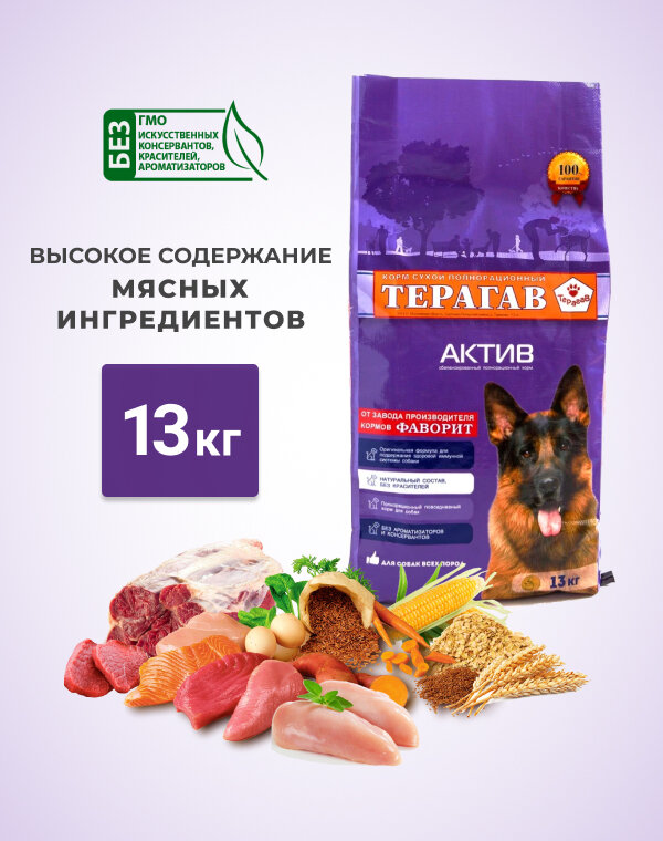 Корм сухой Терагав Актив для взрослых активныхсобак всех пород (13 кг)