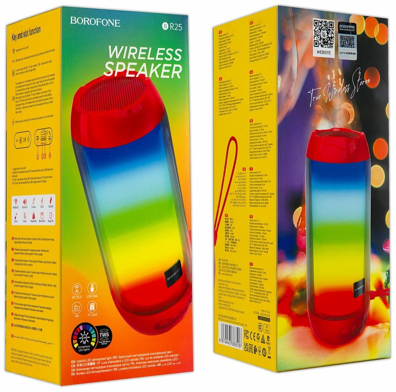 Bluetooth колонка BOROFONE BR25 Crazy Sound BT 5.3, 5W, microSD/USB/FM/RGB (красная), шт BR25