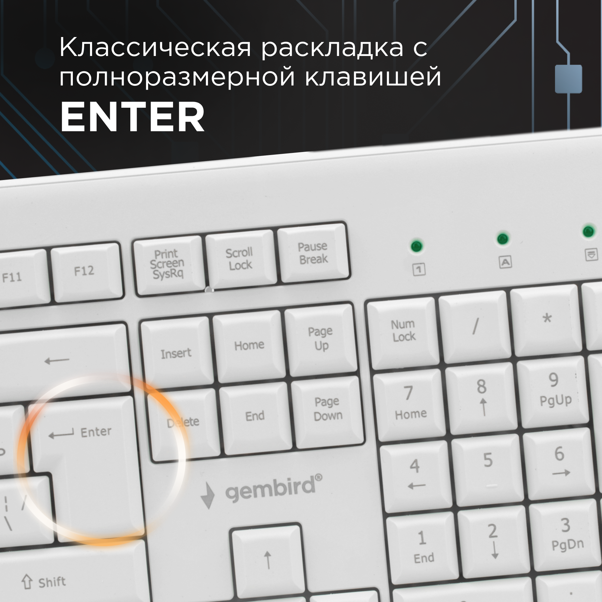 Клавиатура Gembird KB-8430M белая, USB, 113 кл, м/медиа, каб. 1,5м