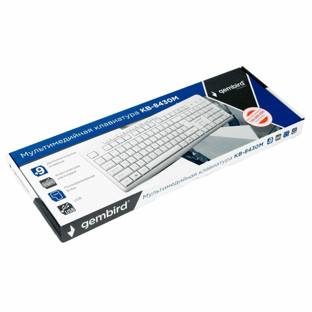 Клавиатура Gembird KB-8430M,USB, белый, 113 клавиш, 9 кнопок управления мультимедиая, кабель 1,5м