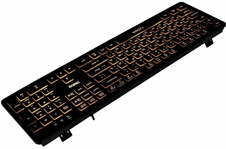 | Плюсы: | Размеры. Однотонная жёлтая подсветка. Регулировка яркости подсветки. Кнопка отключения подсветки. Есть функциональная клавиша Fn как на ноутах с множеством полезных функций. |