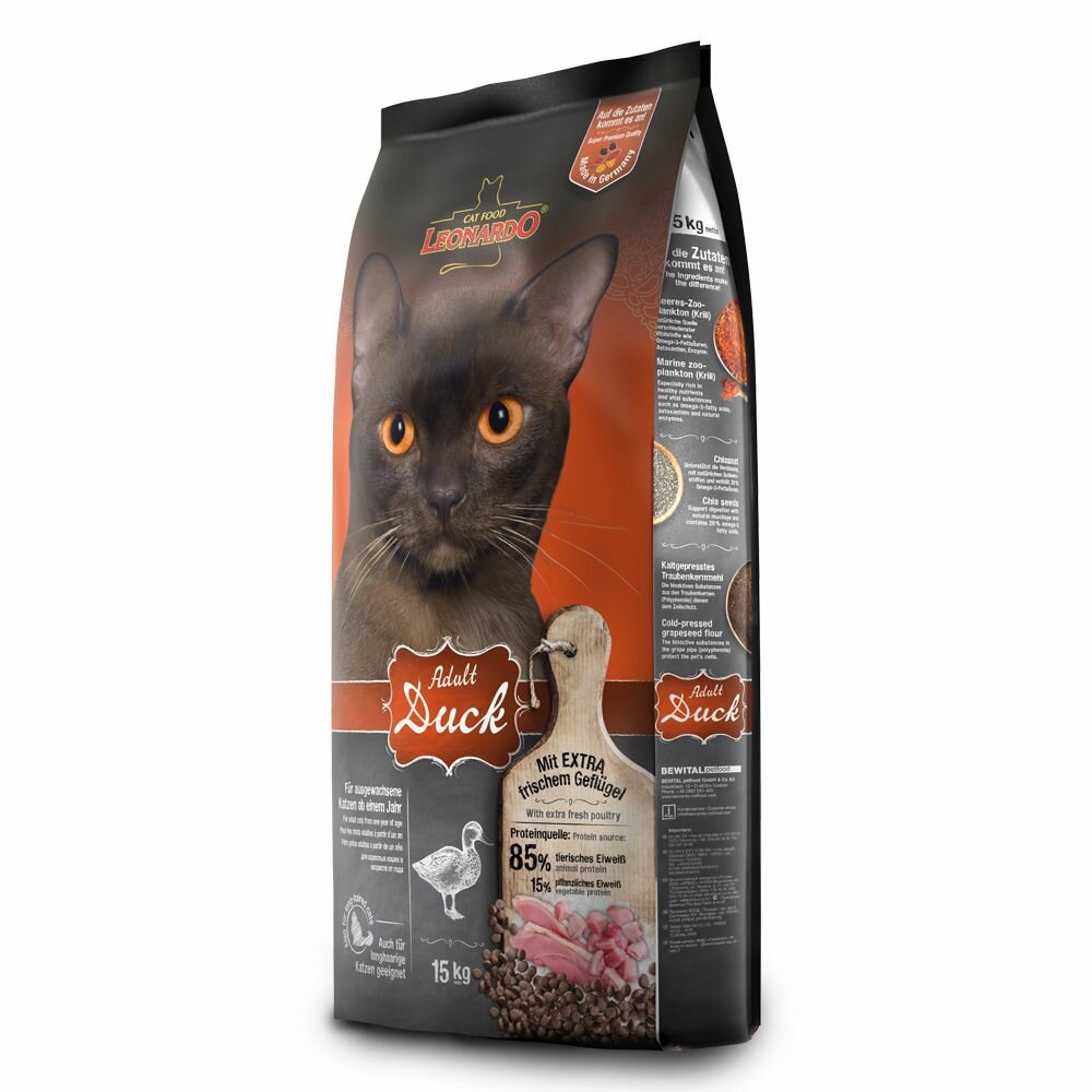 Leonardo корм для взрослых кошек всех пород, утка с рисом 15 кг