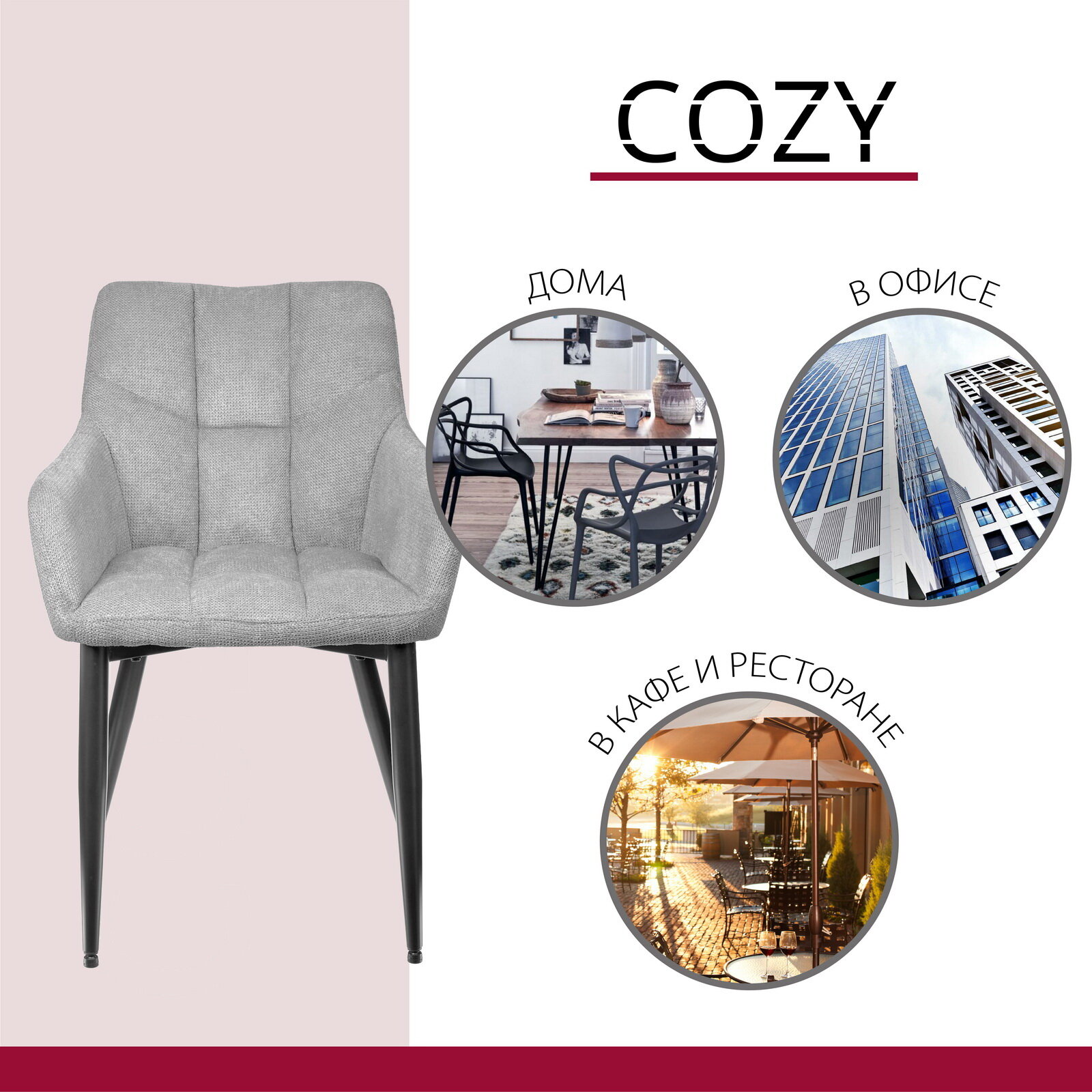 Стул офисный Cozy серый / Стулья для кухни / Кухонные стулья со спинкой / Стул кресло / Кресло на балкон / Стулья для гостиной / Мебель лофт