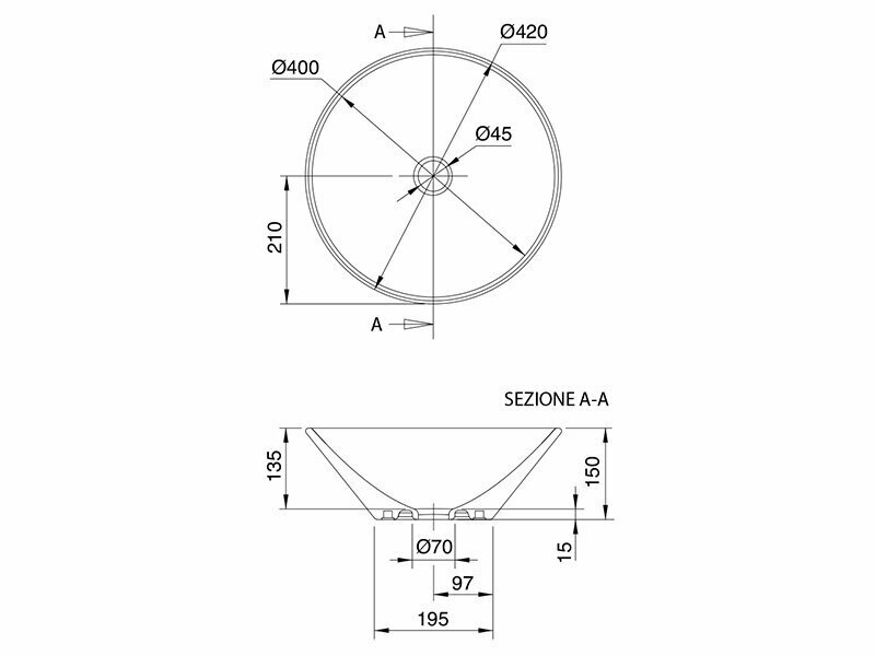 Раковина накладная Scarabeo THIN-LINE 8029/R, с отверстием под смеситель, диаметр 46 см, белая глянцевая