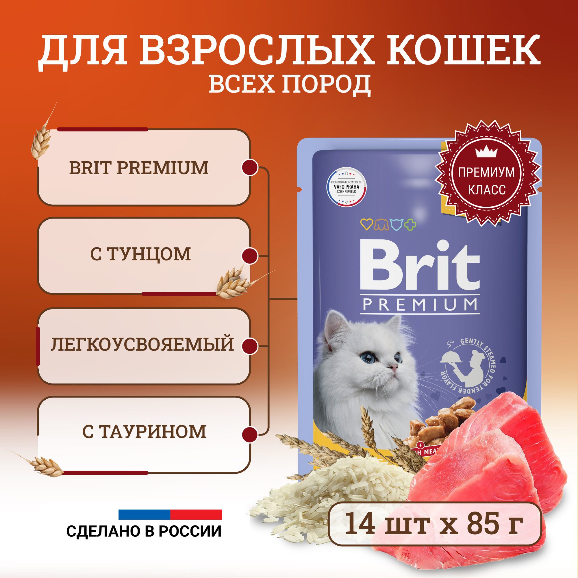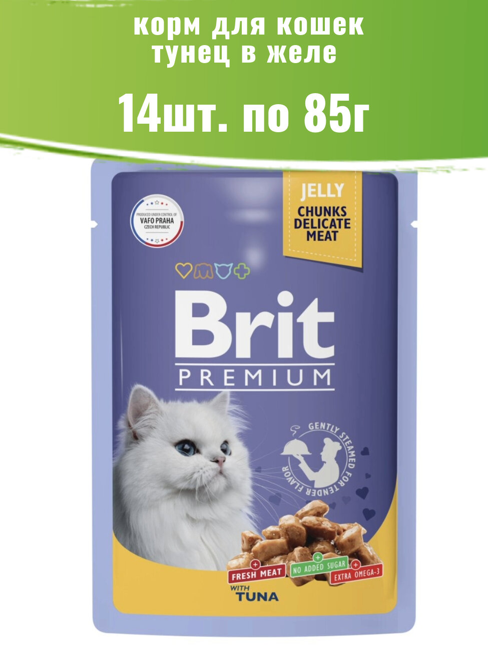 Корм Brit Premium Tuna (в желе) для кошек, с тунцом, 85 г x 14 шт