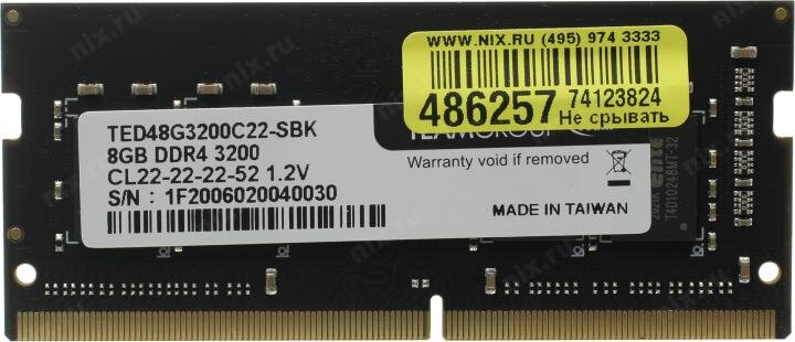 СохранитьОперативная память SODIMM Team Group T-Force Elite TED48G3200C22-S01 8 ГБ интересное: