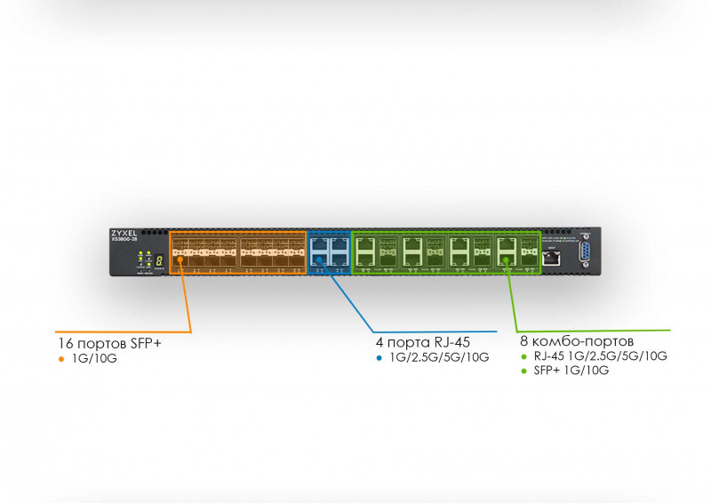 Ниже Вы можете прочитать отзывы на ZyXEL Коммутатор ZYXEL XS3800-28 L2+ switch , 4xRJ-45: 1 / 2.5 / 5 / 10G, 8xCombo (SFP: 1 / 10G, RJ-45: 1 / 2.5 / 5 / 10G), 16xSFP +, ознакомится с подробными характеристиками, посмотреть интересные обзоры и фотографии на ZyXEL Коммутатор ZYXEL XS3800-28 L2+ switch , 4xRJ-45: 1 / 2.5 / 5 / 10G, 8xCombo (SFP: 1 / 10G, RJ-45: 1 / 2.5 / 5 / 10G), 16xSFP +.