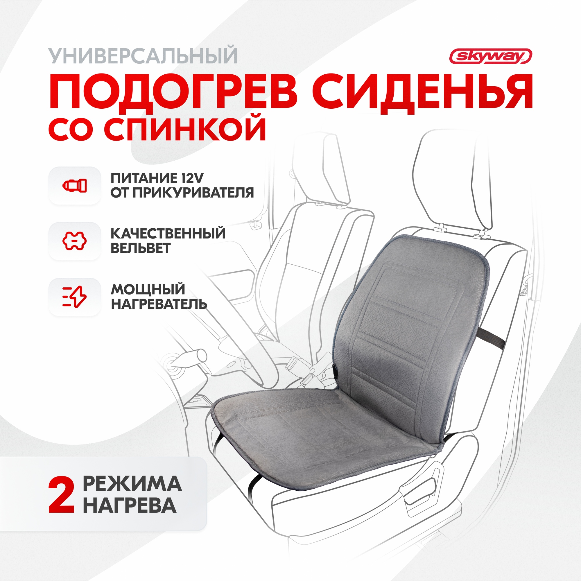 SKYWAY Подогрев сиденья со спинкойс терморегулятором 2 режима серый S02201019