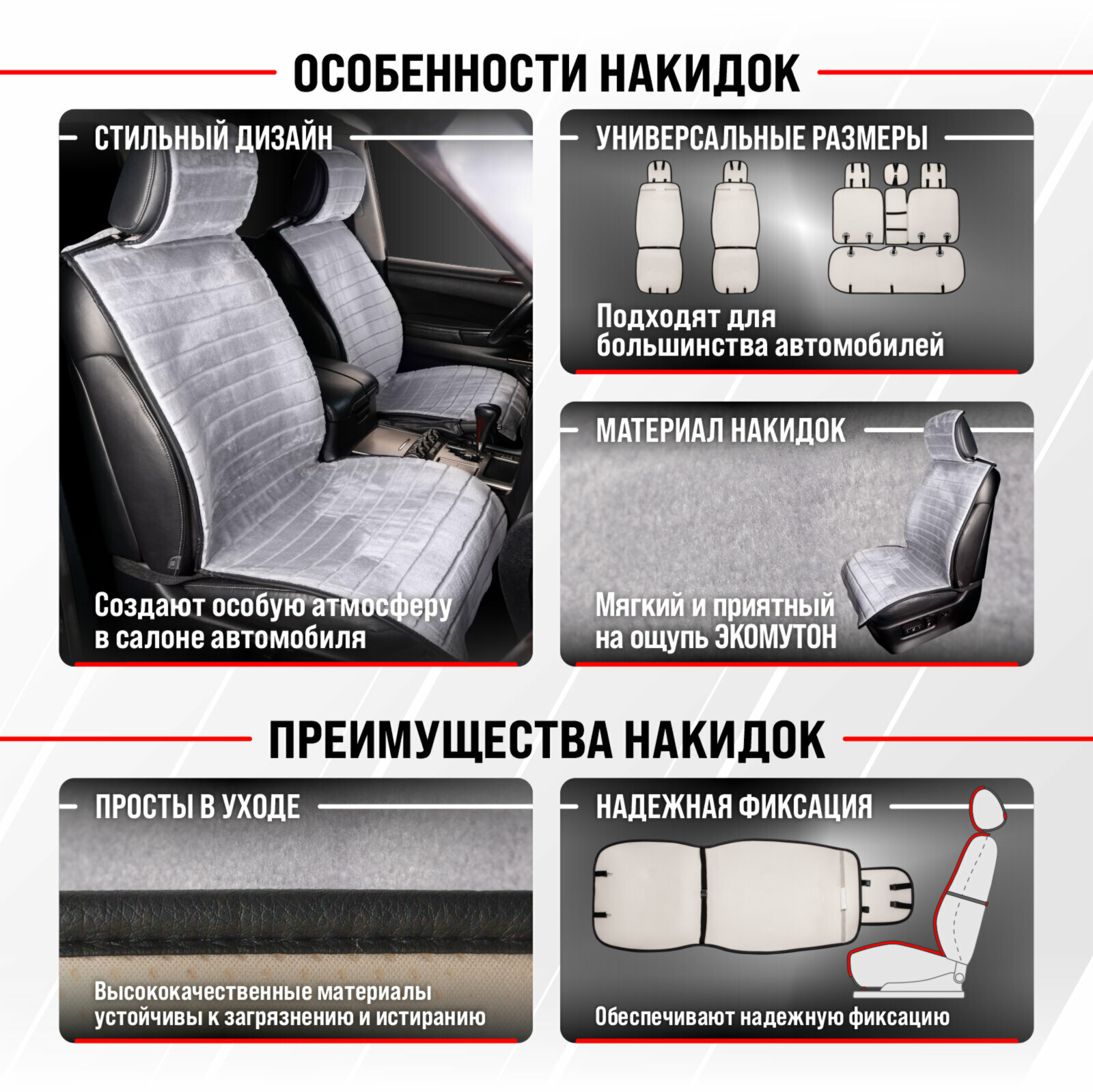 СохранитьНакидка сиденья меховая искусственная мутон 5 предм. SKYWAY ARCTIC Серый Полоска интересное: