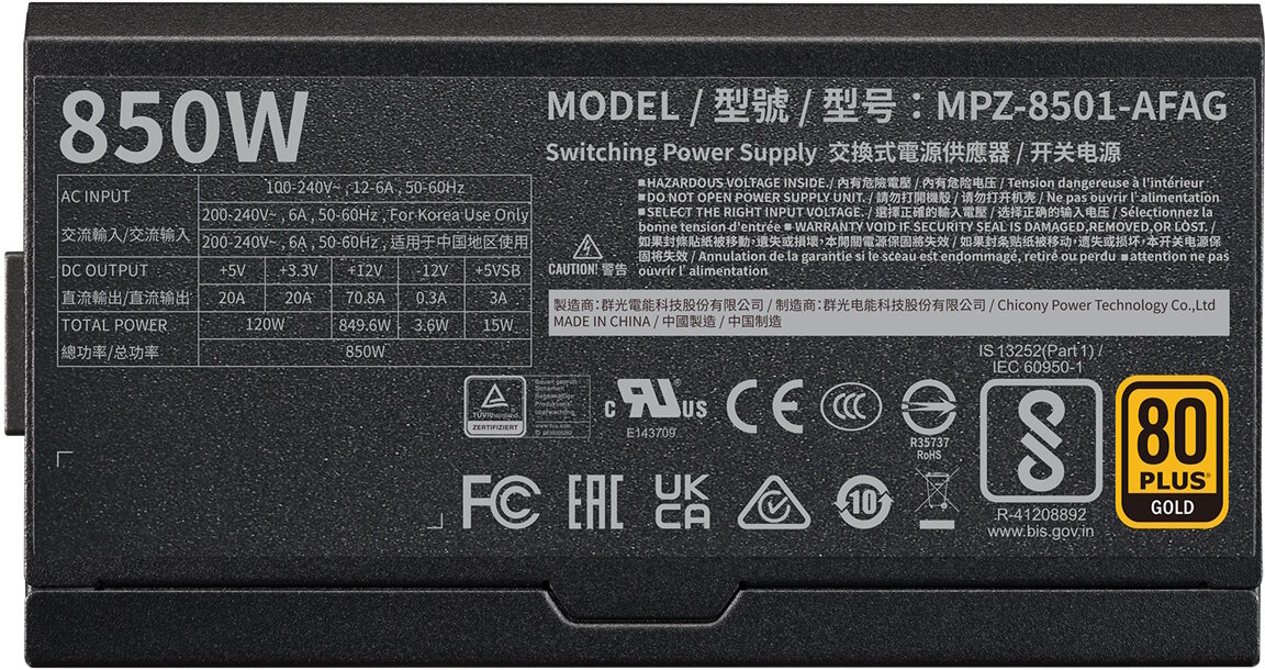 Cooler Master V850 Gold V2 Блок питания 850 Ватт MPY-850V-AGBAG-EU интересное: