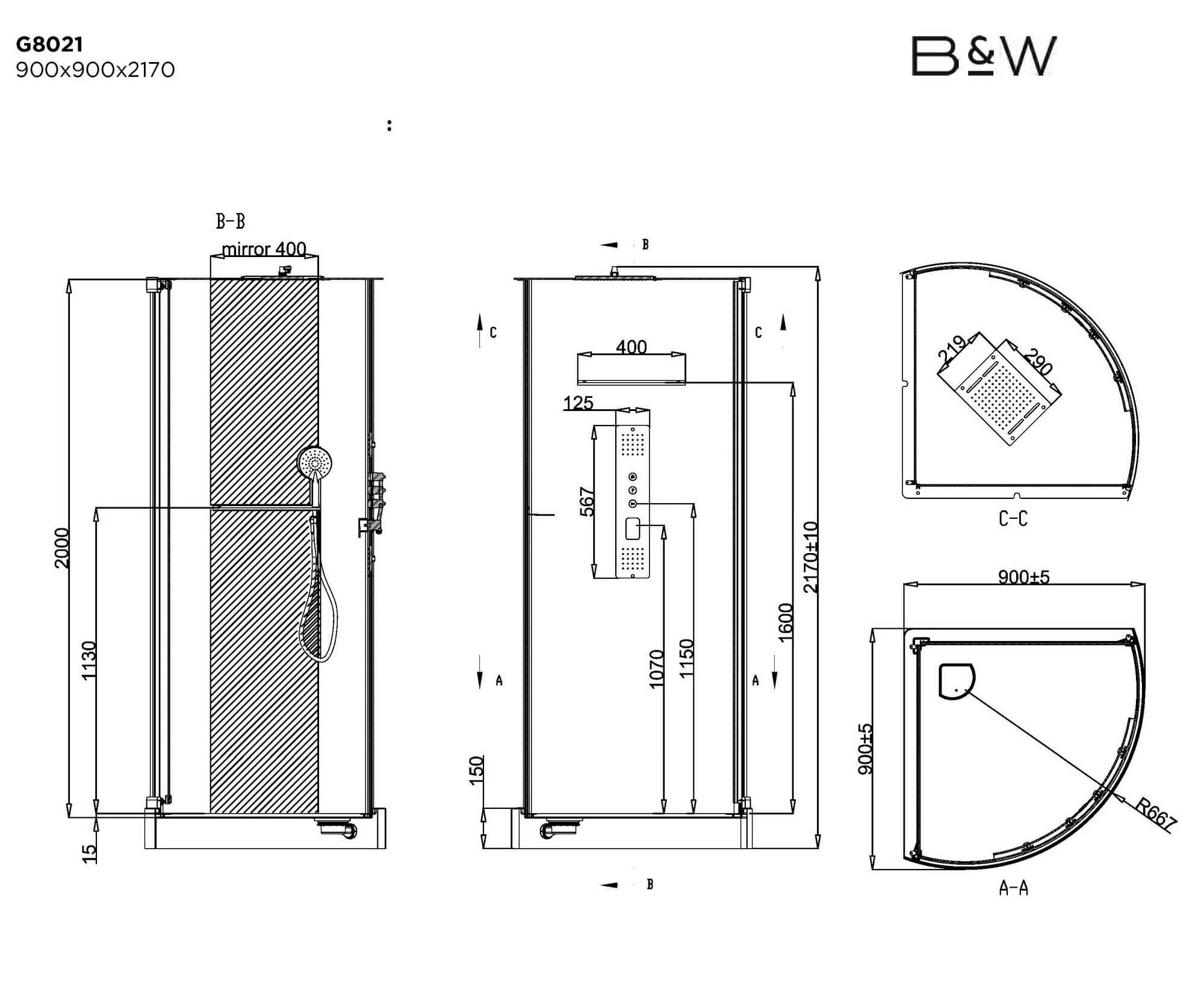 Душевая кабина Black&White G8021 90x90