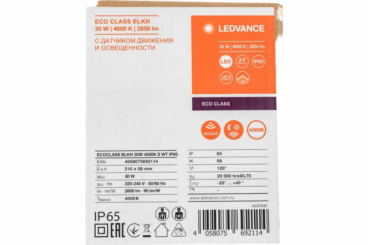 LEDVANCE Светильник светодиодный ECOCLASS BLKH 30W 4000K WT IP65 4058075692091