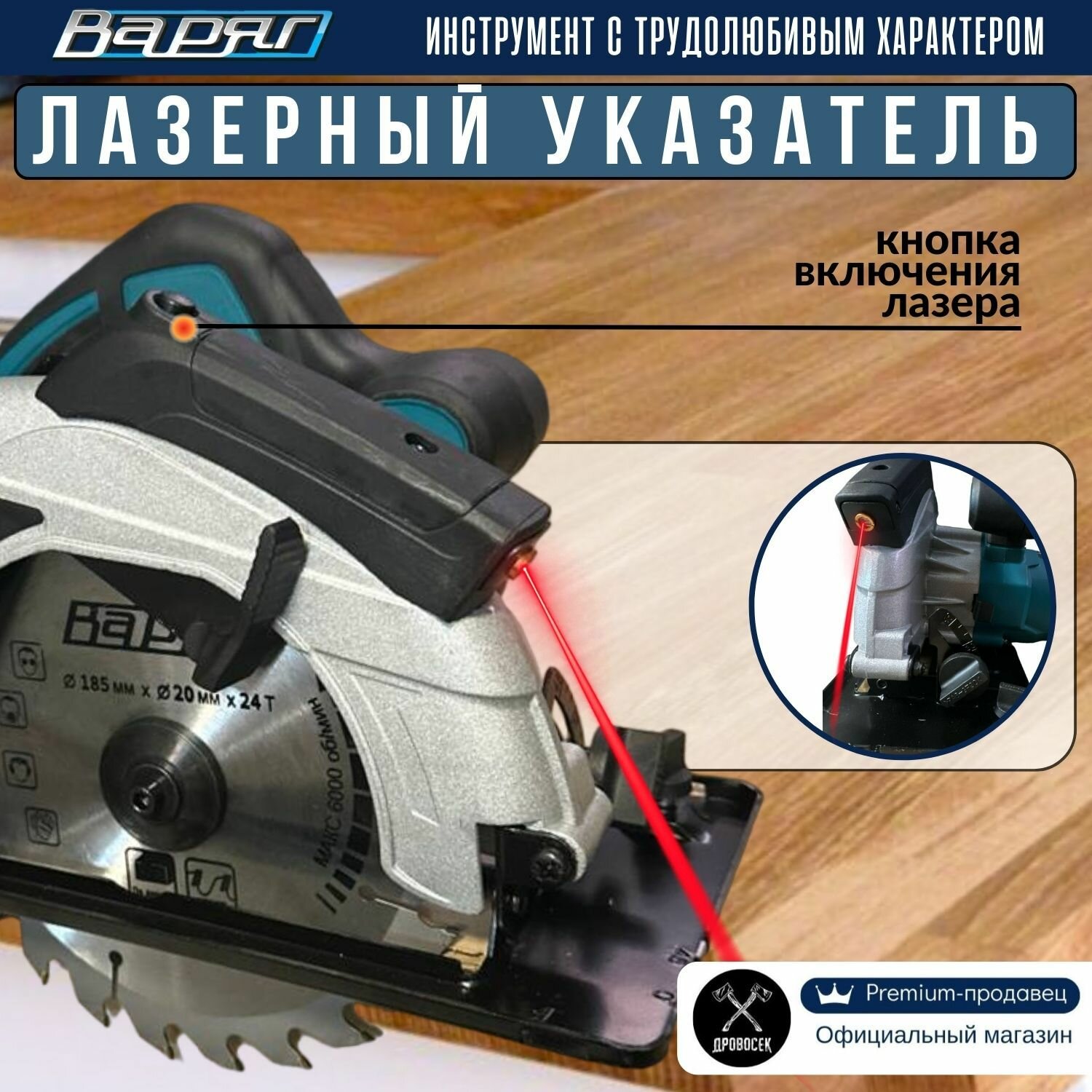 Циркулярная пила дисковая Варяг ДП-185/1600 электрическая ручная сетевая (1600Вт, 185мм, 5000об/мин, с лазером ), дисковая мини циркулярка отрезная, подарок мужчине