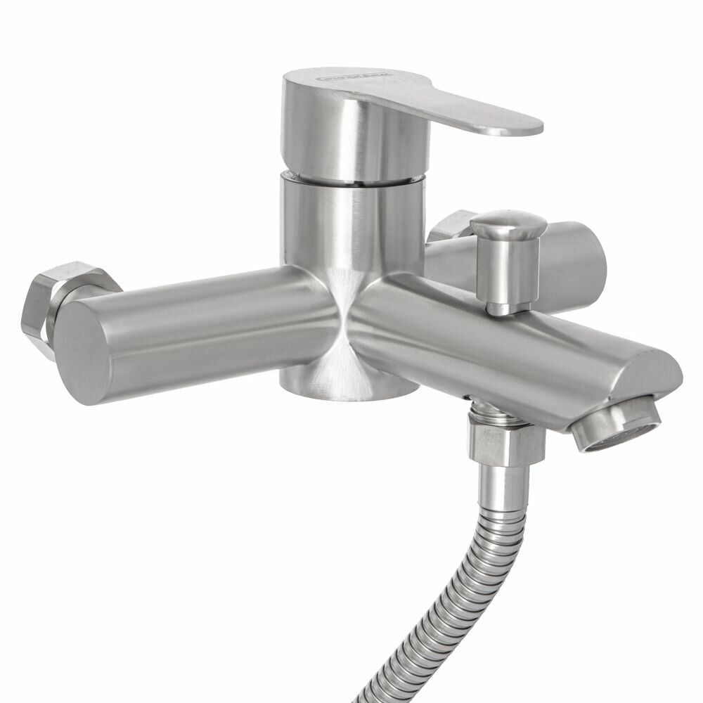СоюзКран Смеситель для ванны с душем, короткий излив, керам. картридж 35мм, нерж. сталь, SS09-M118