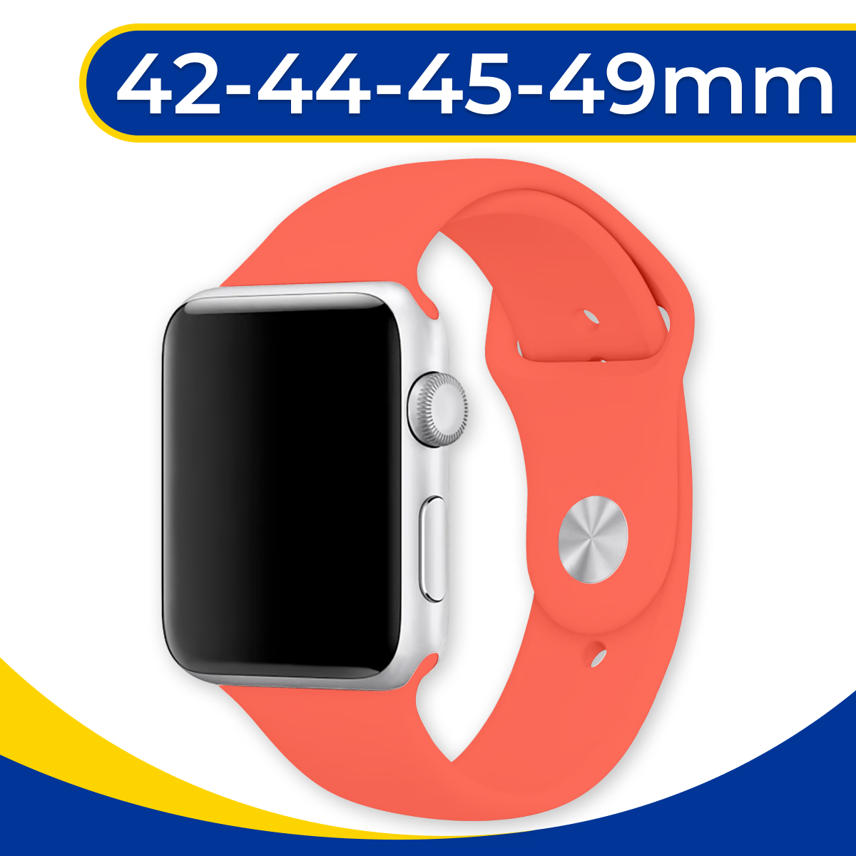 Силиконовый ремешок на Apple Watch 1-9, SE, Ultra 42, 44, 45, 49 мм / Спортивный браслет на смарт часы Эпл Вотч 1-9, СЕ, Ультра / Papaya