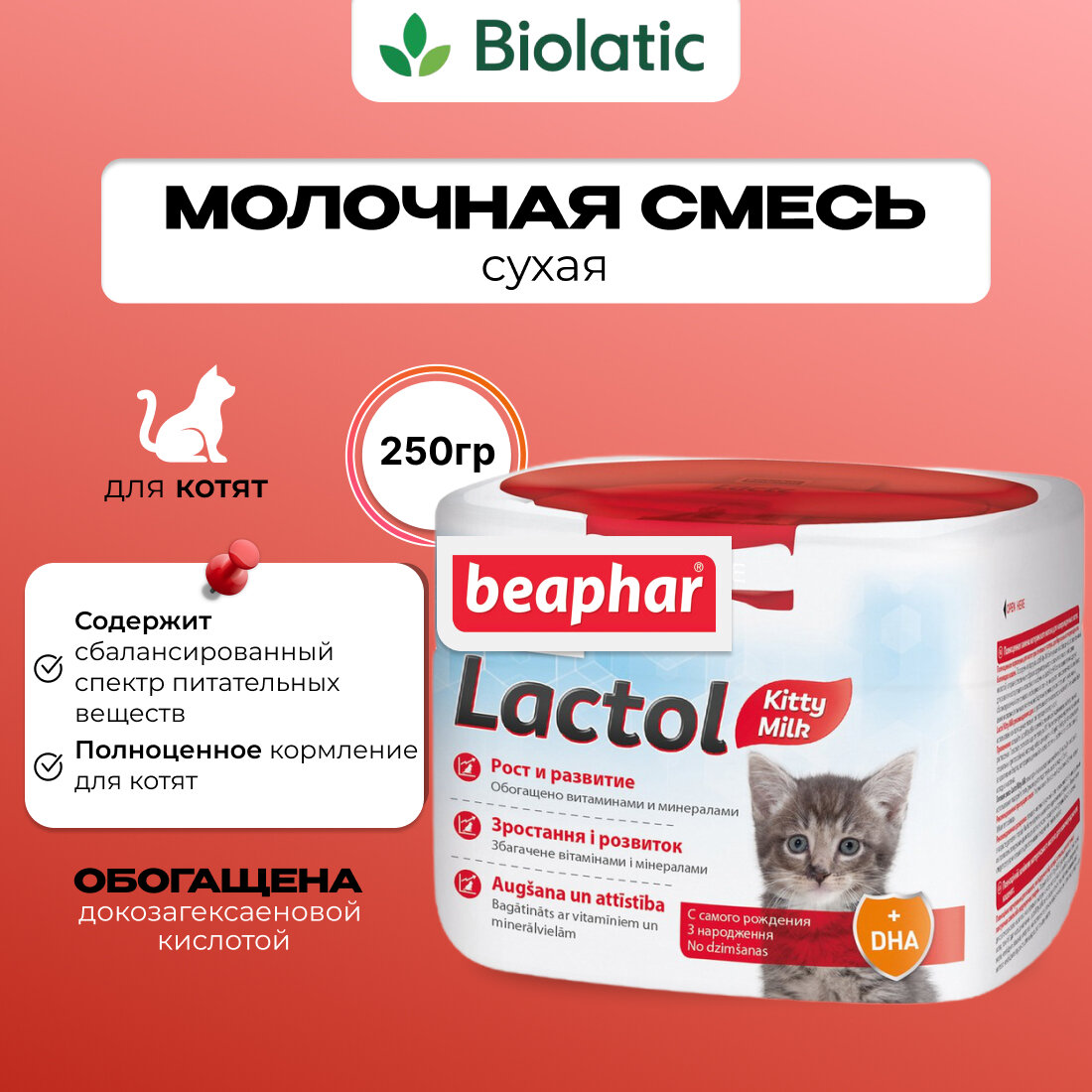 Сухое молоко беафар (BEAPHAR) Lactol Kitty Milk Молочная смесь для котят 250 г