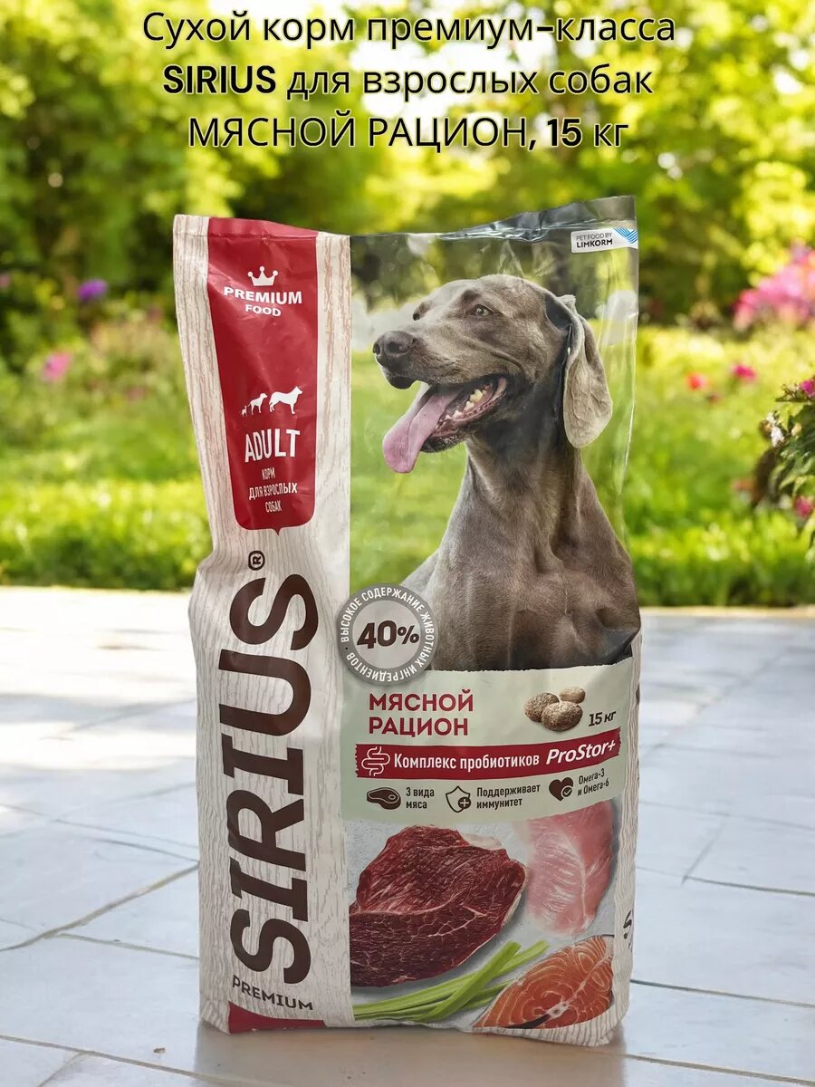 Купить SIRIUS Мясной рацион Сухой корм для собак 15кг