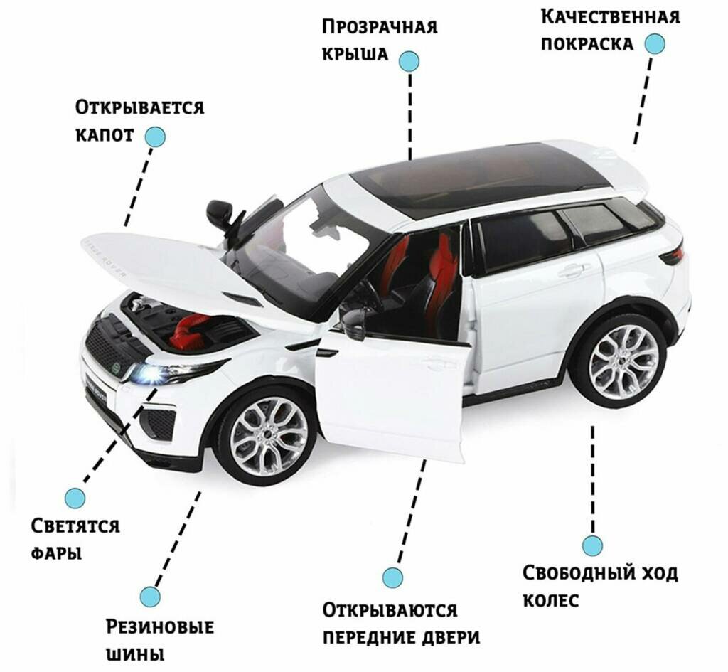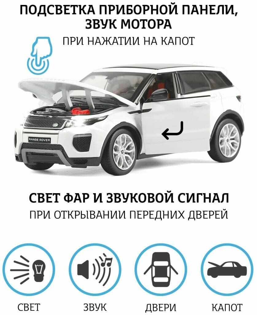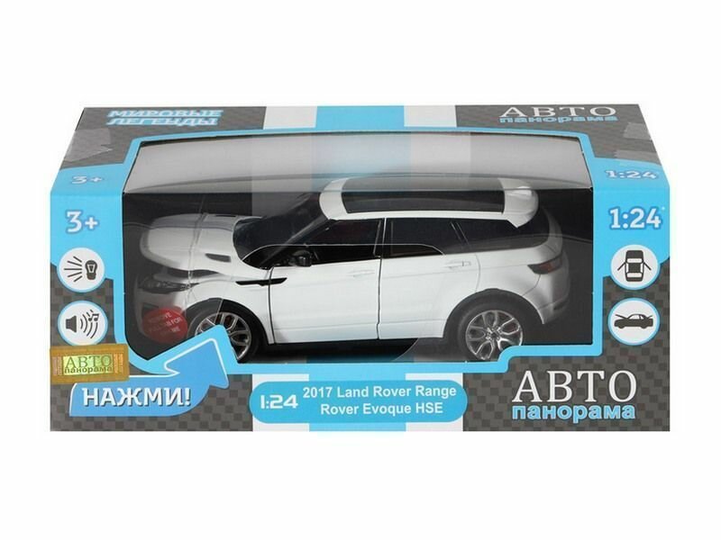 Модель машины Автопанорама 1:24 Land Rover Range Rover Evoque HSE 2017, белый, открываются двери и капот, свет, звук