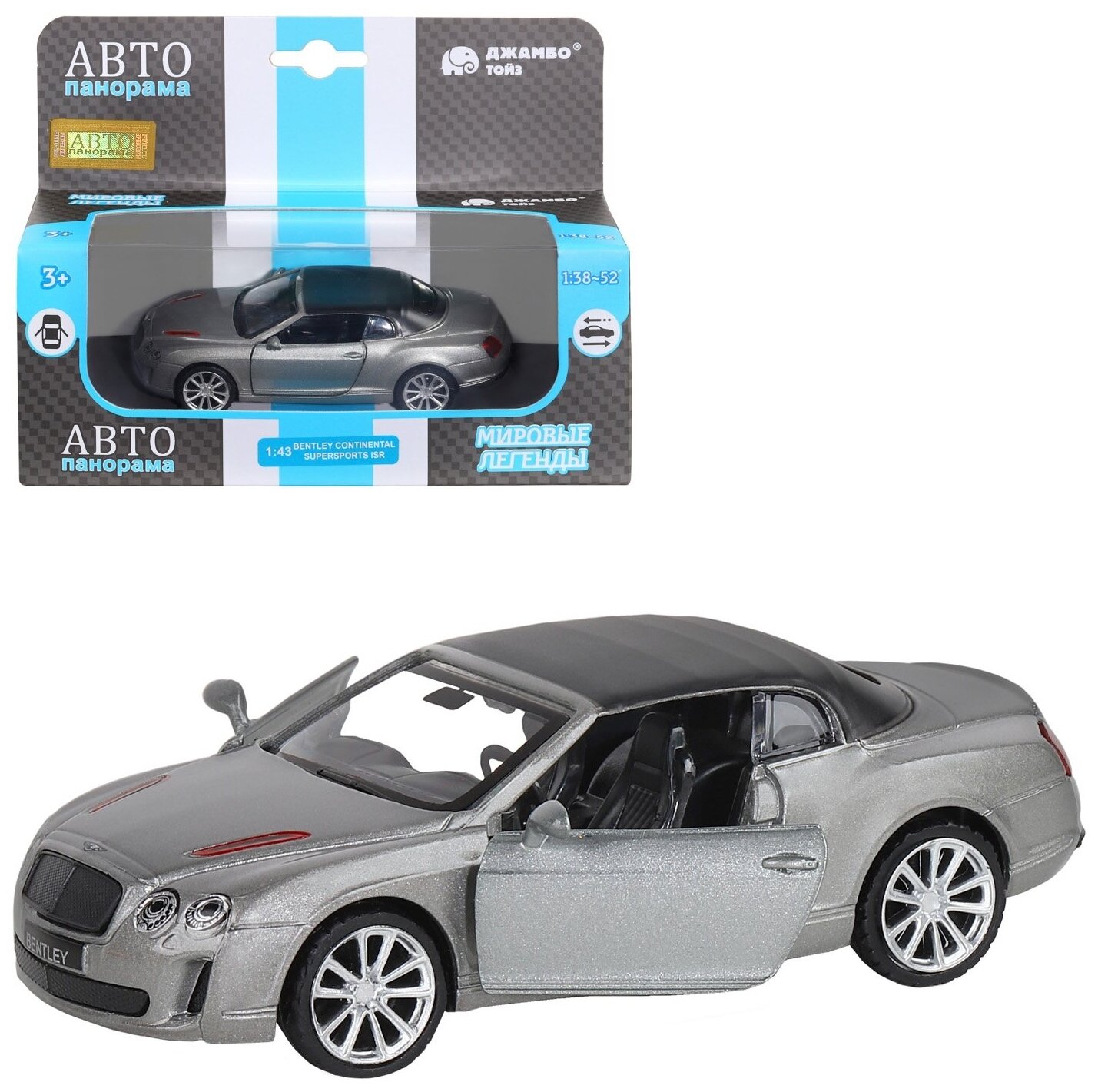 Купить Машинка металлическая Автопанорама 1:43, Bentley Supersport ISR серый, инерция, открываются двери (JB1251251)