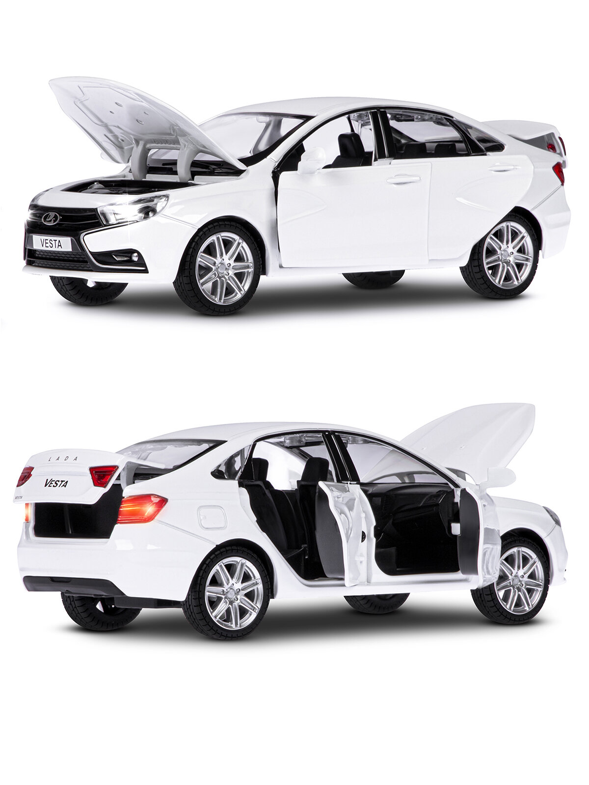 Машина металлическая «Lada Vesta седан» 1:24, цвет белый, открываются двери, капот, багаж, световые и звуковые эффекты