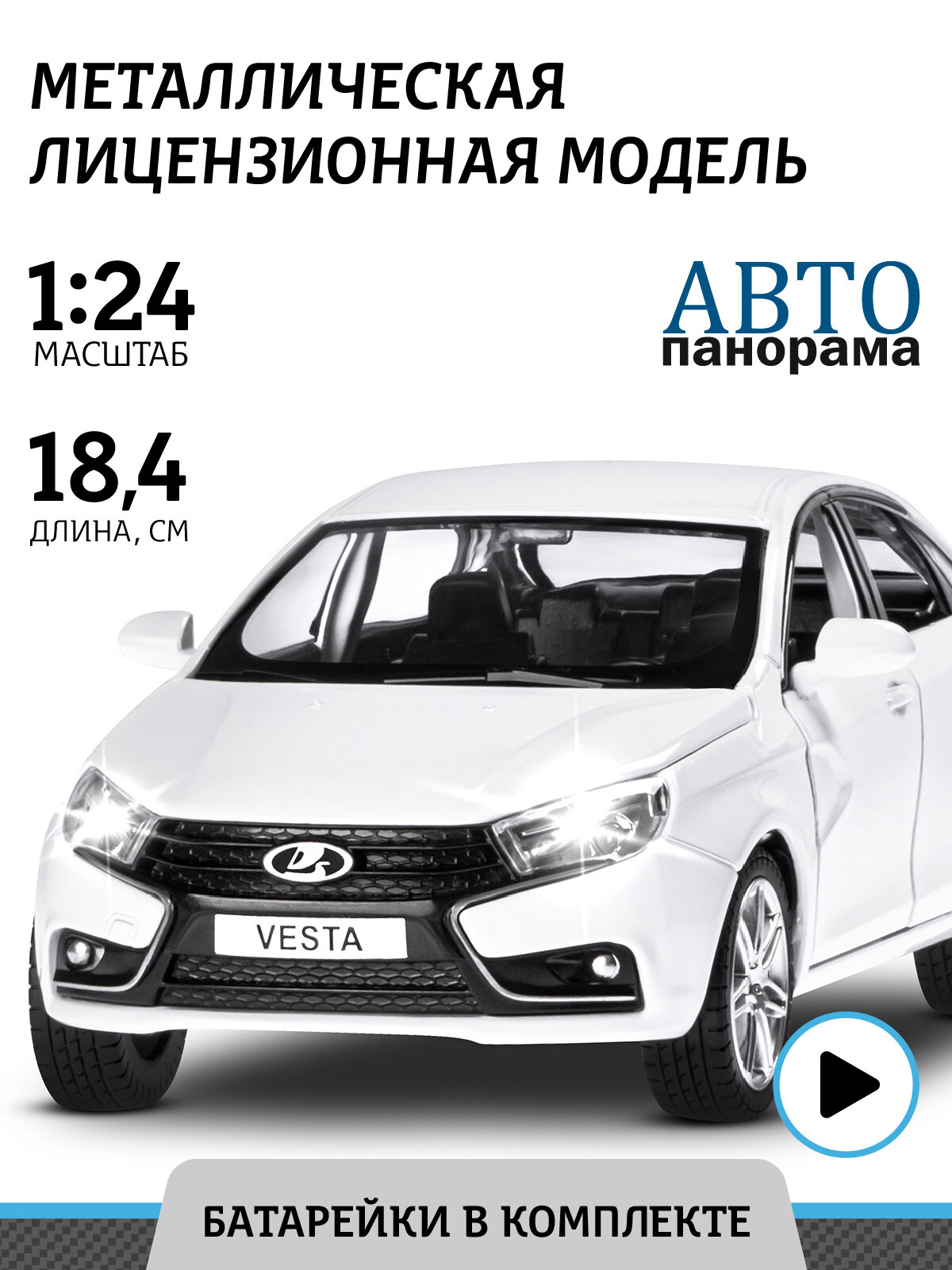 Купить Модель машины инерционная Автопанорама Lada Vesta седан, 1:24, белый, открываются двери, капот, багажник, свет, звук