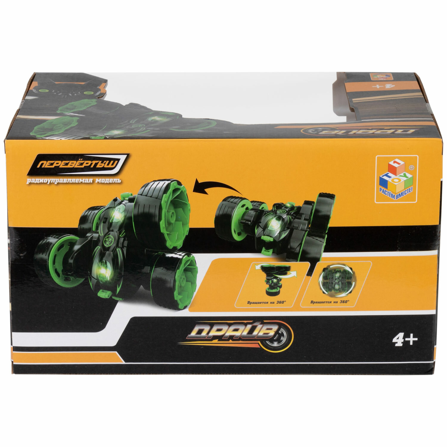 1toy Драйв, трюковая машина-перевертыш на р/у, размер: 12 см, 2,4 ГГц, 4 канала, вращение на 360 градусов, АКБ 3,7V380mAh, свет. эфф.