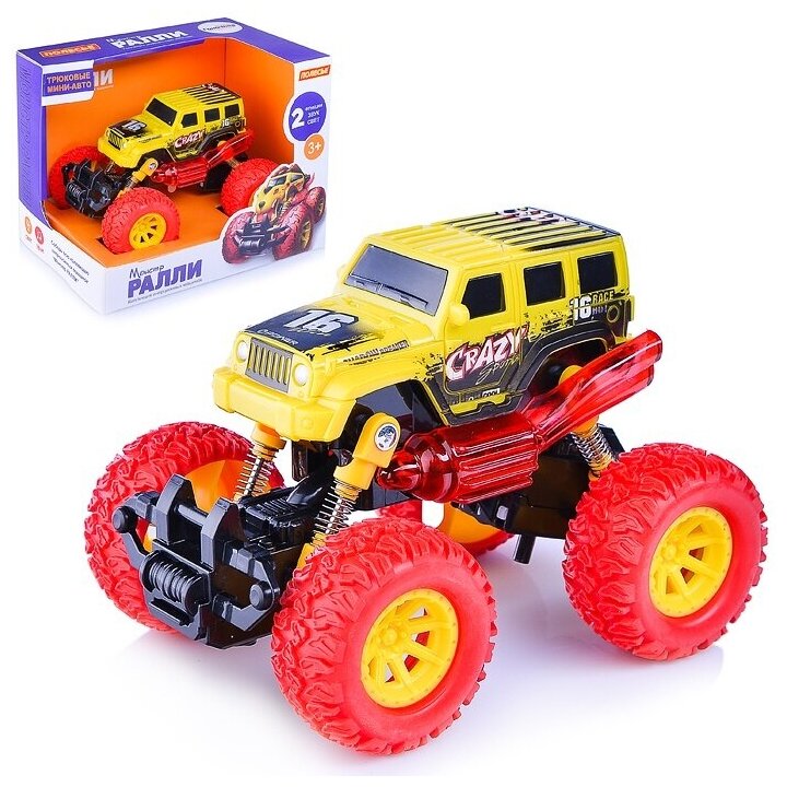 Автомобиль инерционный "Монстр ралли" - "Крэйзи" (со светом и звуком), в коробке 16,5x11,5x13,5 см