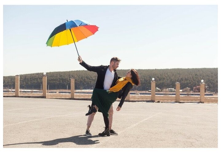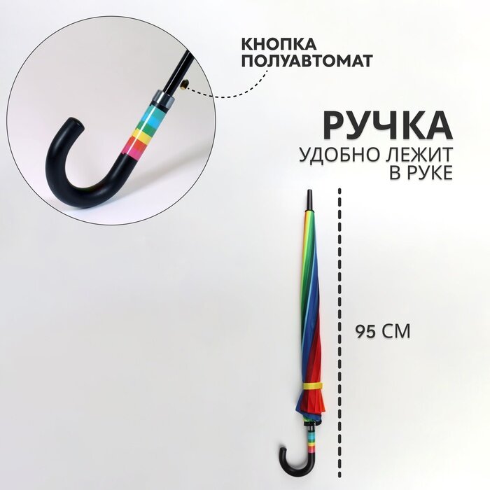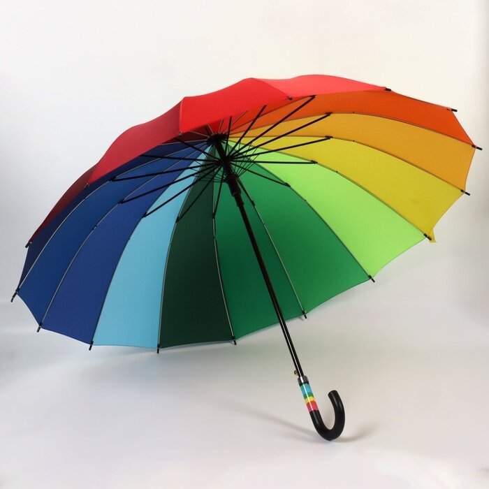 Зонт - трость полуавтоматический «Радуга», эпонж, 16 спиц, R = 61 см, разноцветный интересное: