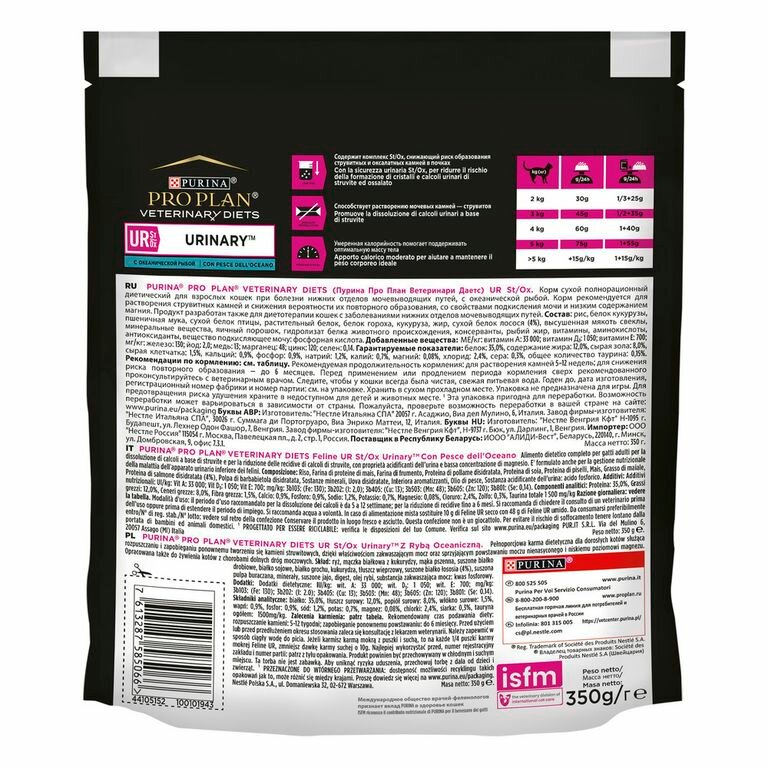 Сухой корм Pro Plan Veterinary Diets UR St/Ox для взрослых кошек при болезни нижних отделов мочевыводящих путей, с океанической рыбой, Пакет, 350 г интересное: