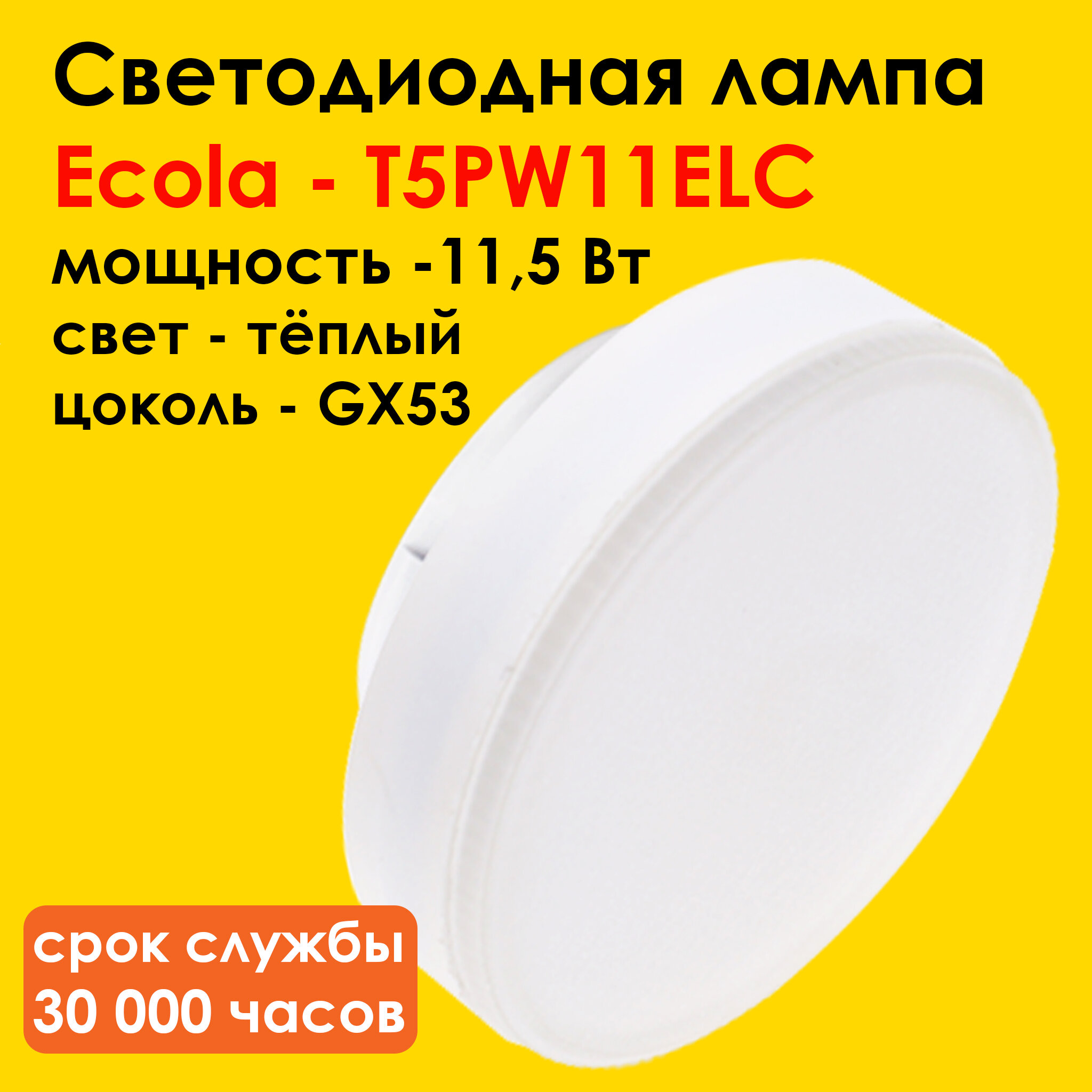 Лампа светодиодная Ecola Light GX53 11,5W 2700K тёплый белый свет 27x75мм (лампочка Экола Tablet 220V LED 11,5 Вт)