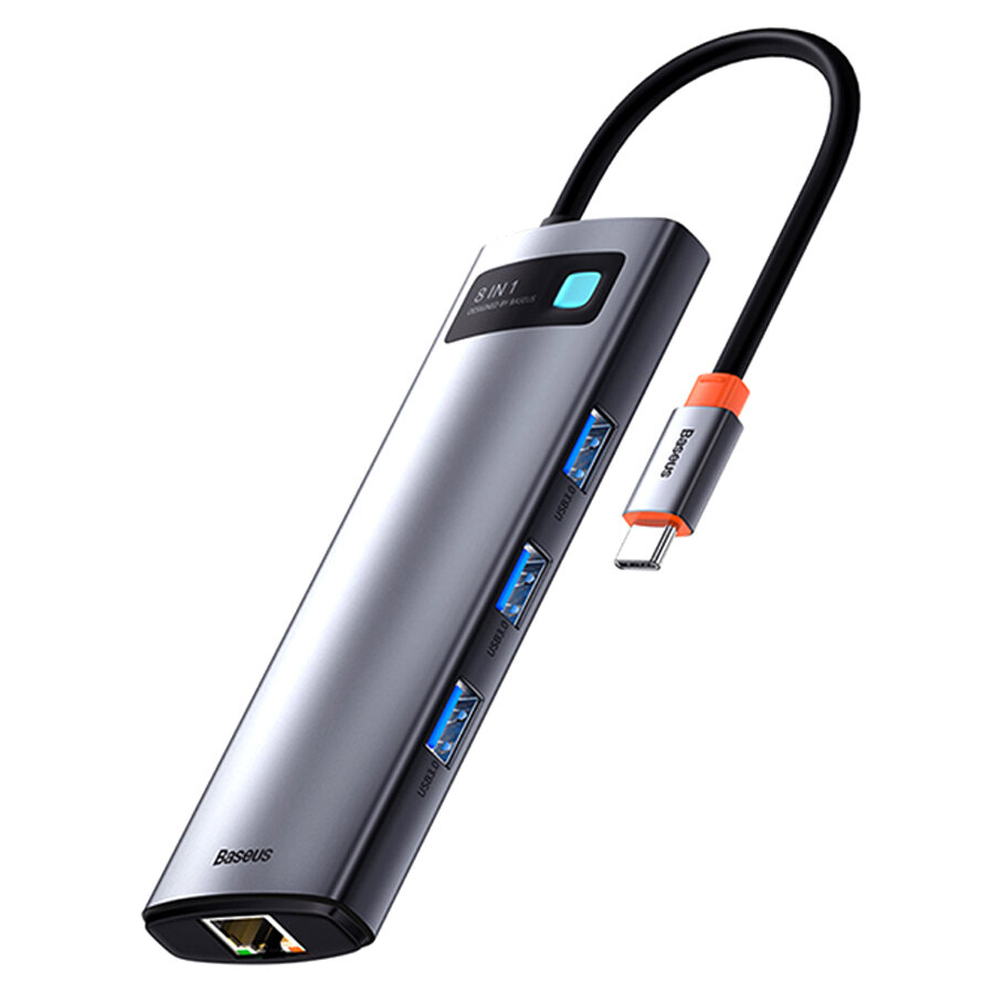 Многофункциональная док-станция Baseus Metal Gleam серии 8 в 1 с концентратором Type-C серого цвета (Type-C к HDMI * 1 + USB 3,0 * 3 + PD * 1 + RJ45 * 1 + SD/TF * 1)