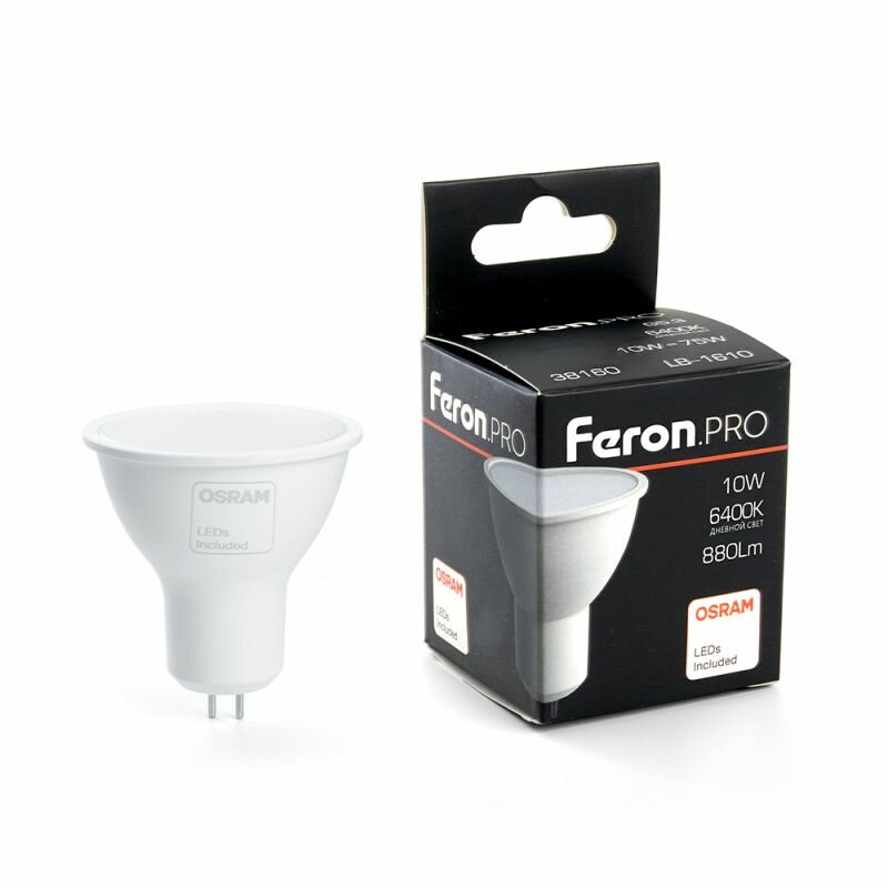 Лампа светодиодная . PRO LB-1610 GU10 10W 4000K, FERON 38162 (1 шт.)