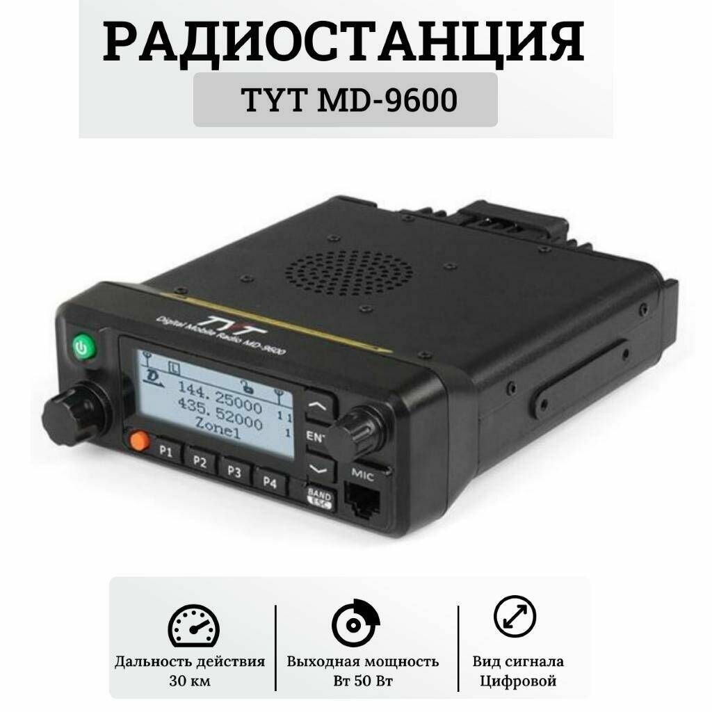 Цифровая автомобильная рация TYT MD-9600, мощность 50W, радиус до 30 км