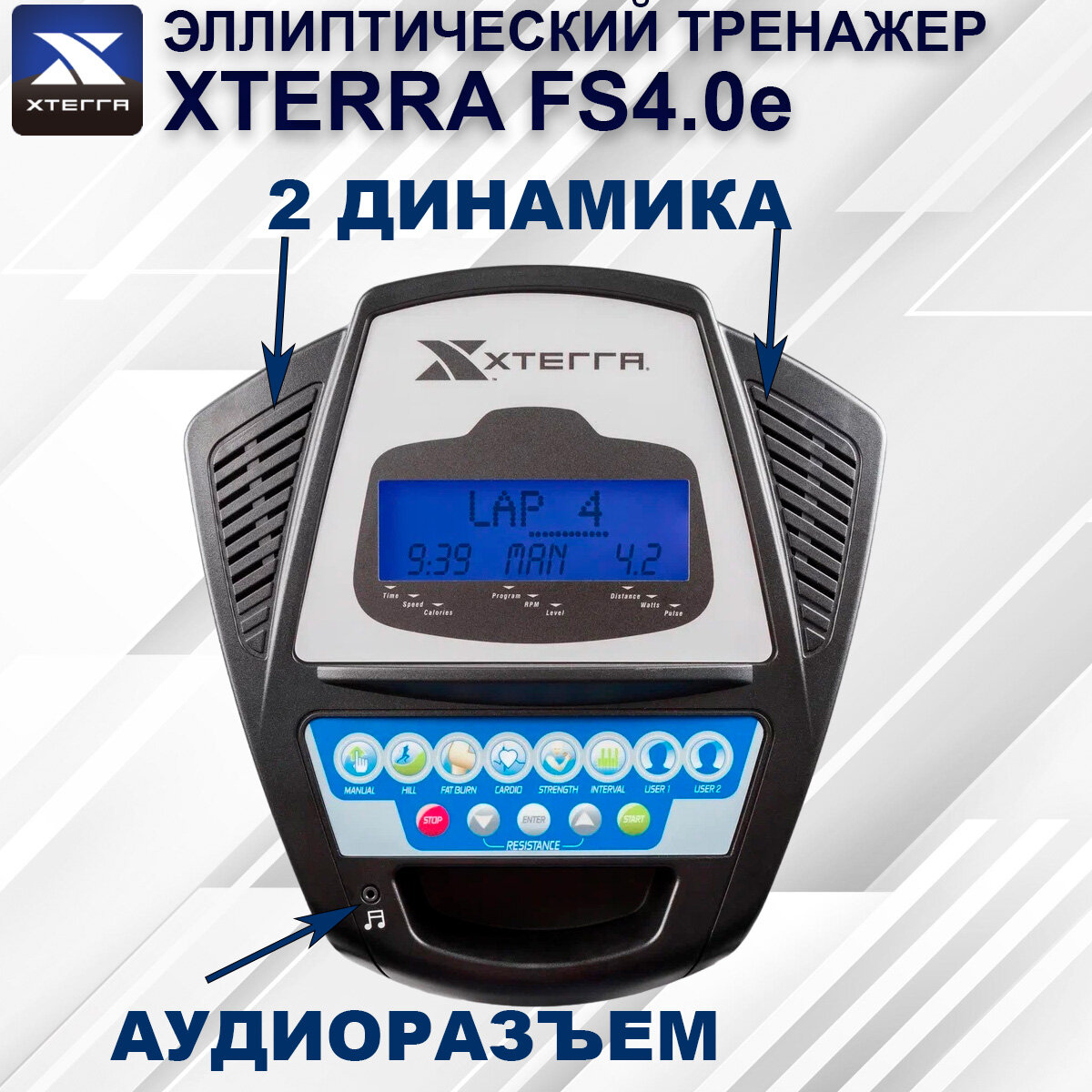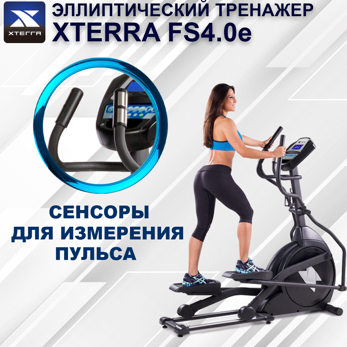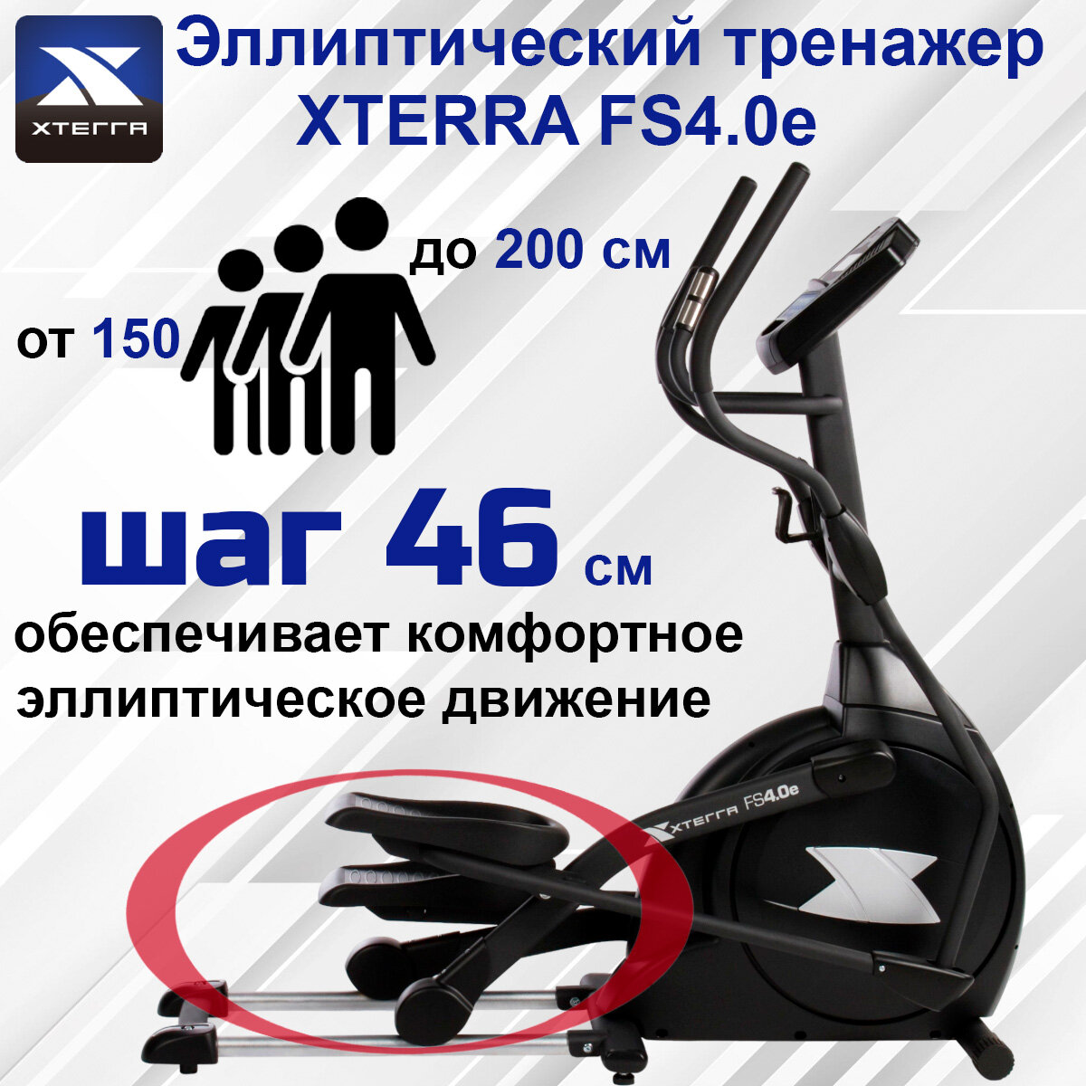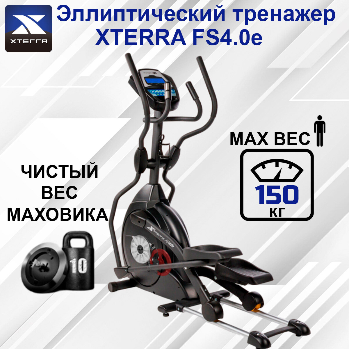 Эллиптический тренажер Xterra FS4.0e-до150 кг/жиросжигание/бережет суставы/шаг 46 см/20 уровней сопротивления/10 кг вес маховика/9 программ интересное:
