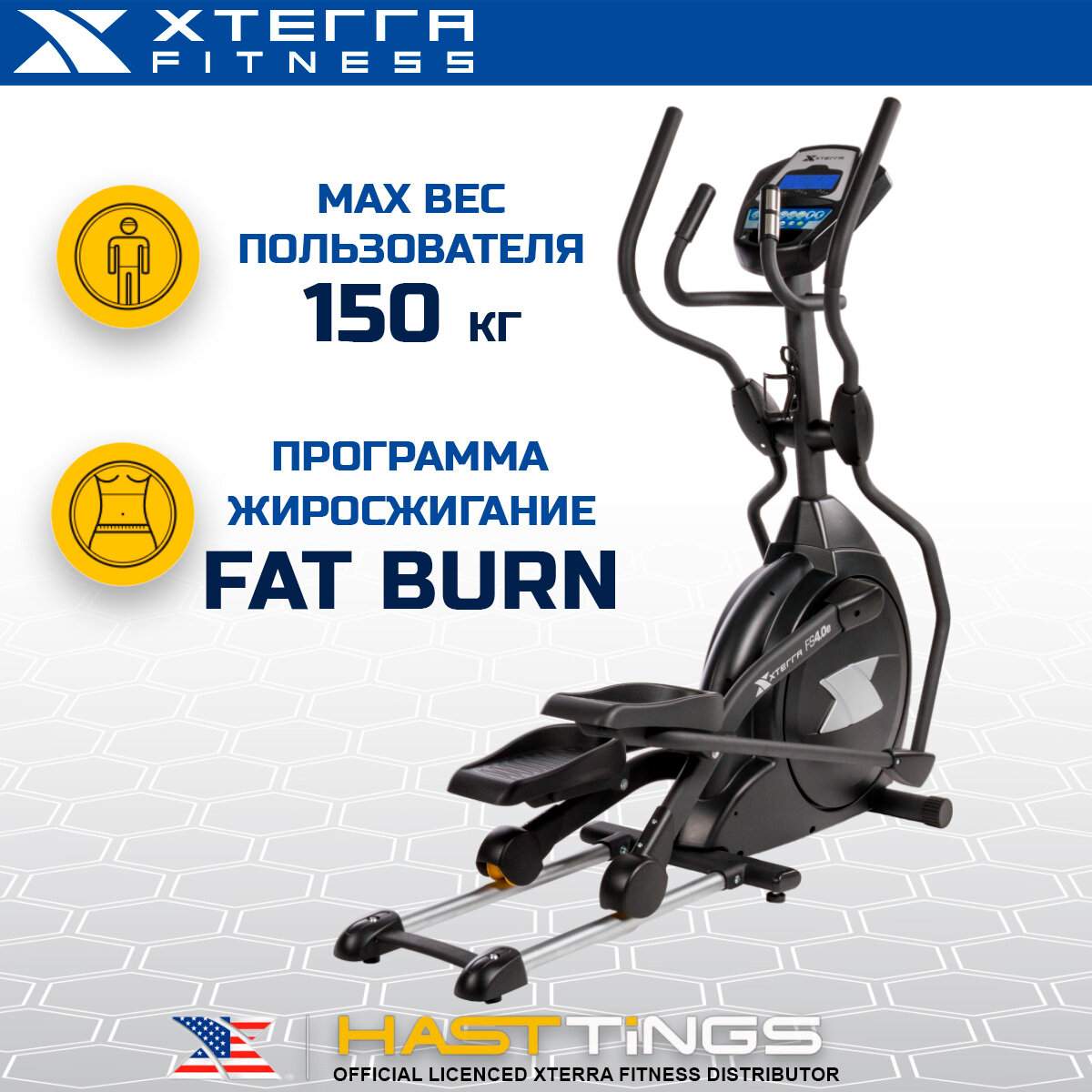 Эллиптический тренажер XTERRA FITNESS FS4.0, магнитная нагрузка, длина шага 46см