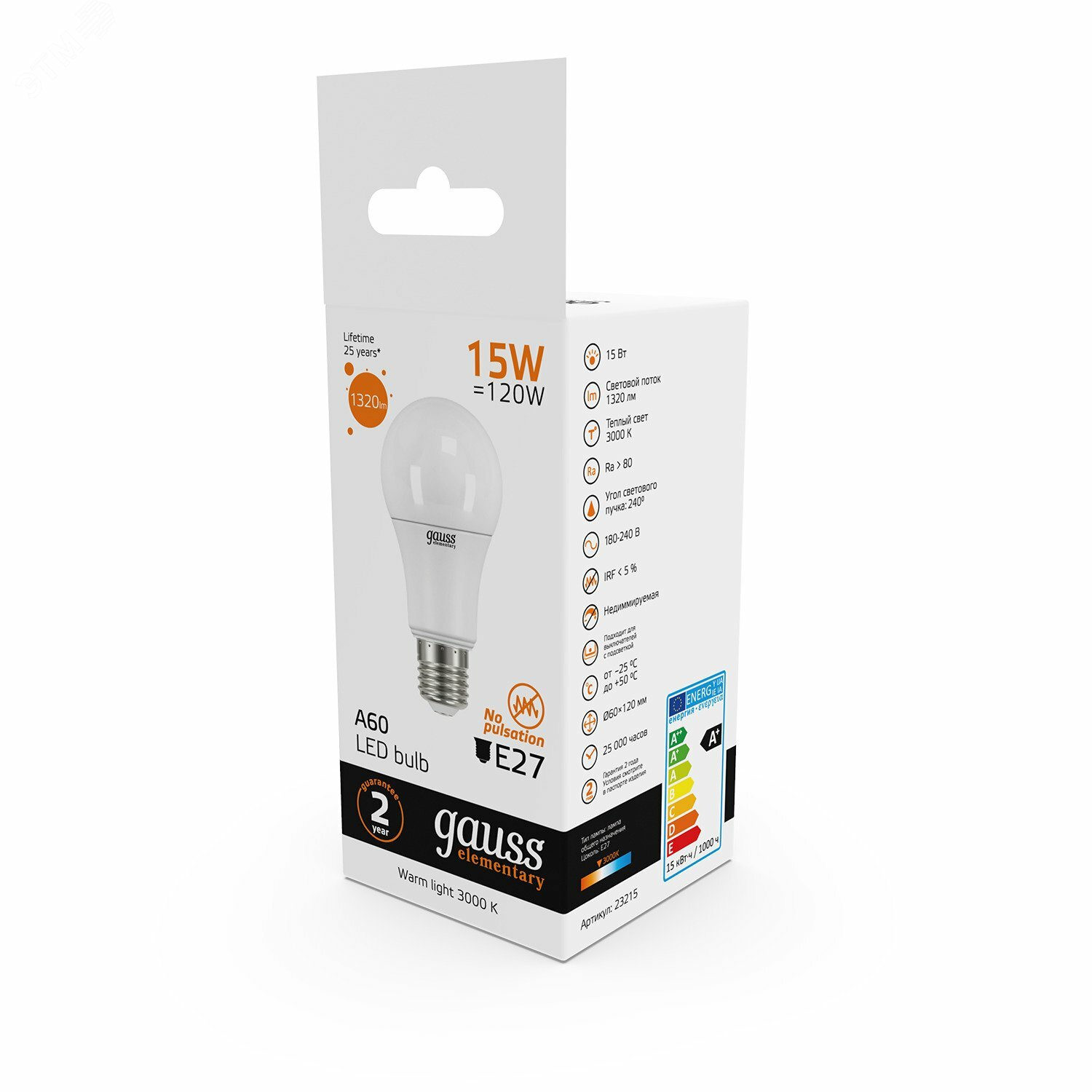 Лампа светодиод 15Вт груша А60 Е27 3000К 1320Лм матовая Gauss Elementary интересное: