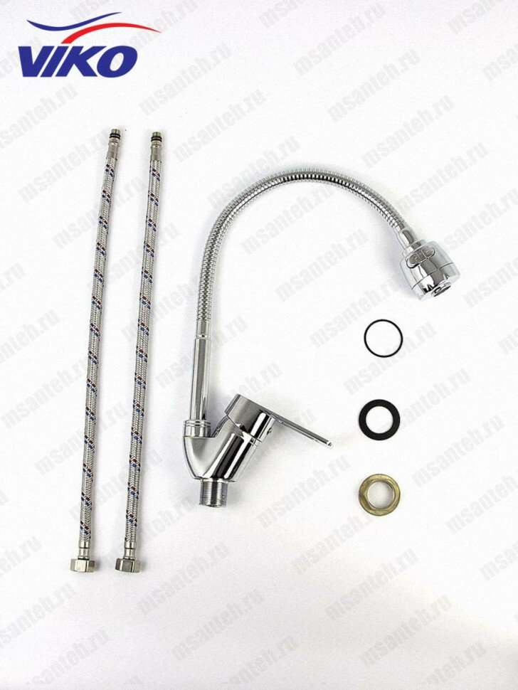 Смеситель для кухни с гибким изливом и двухрежимной лейкой VIKO V-6574, цвет хром