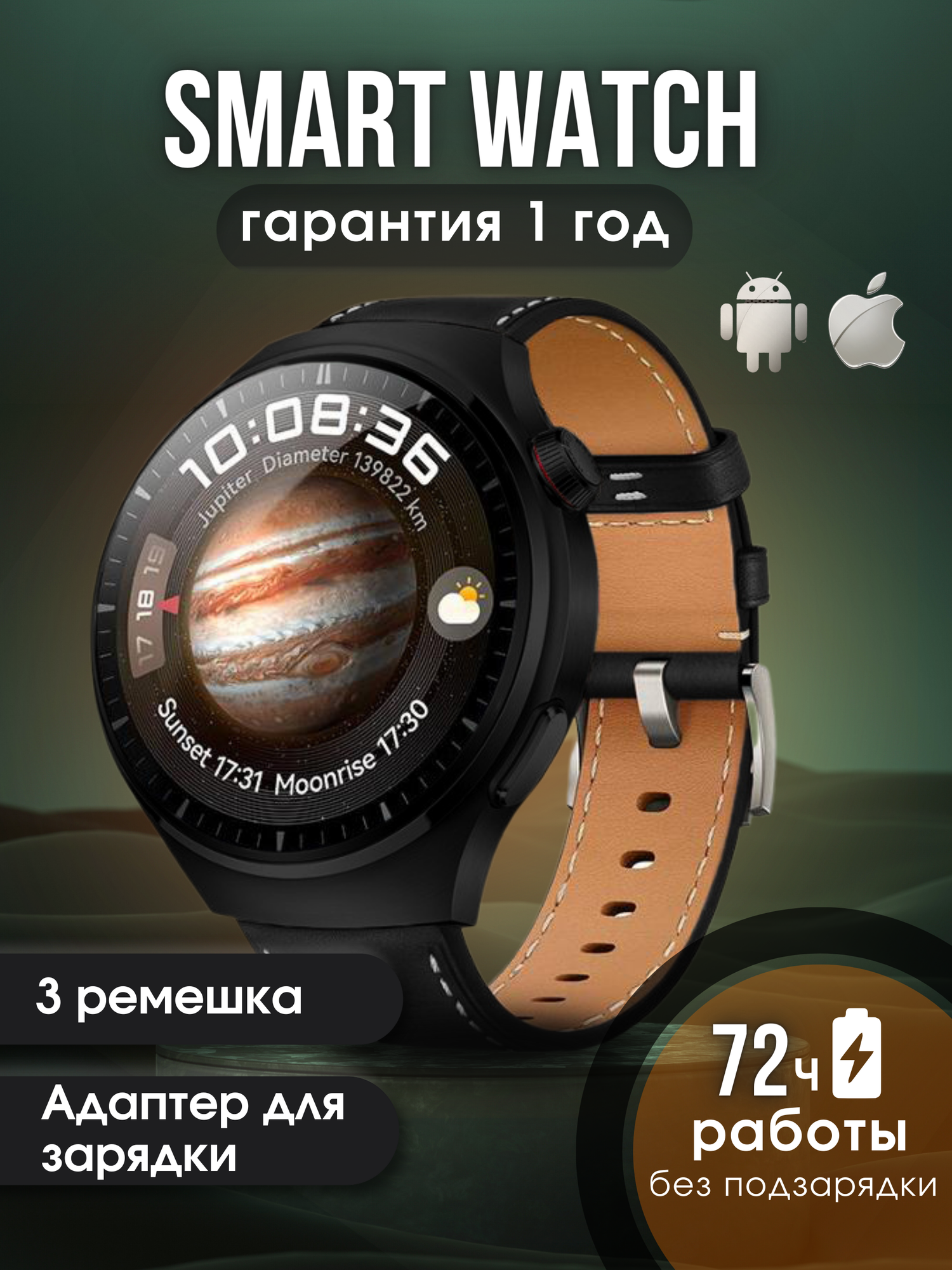 | Дополнительная информация | В комплекте часы, беспроводная зарядка, подарочный металлический ремешок,инструкция |