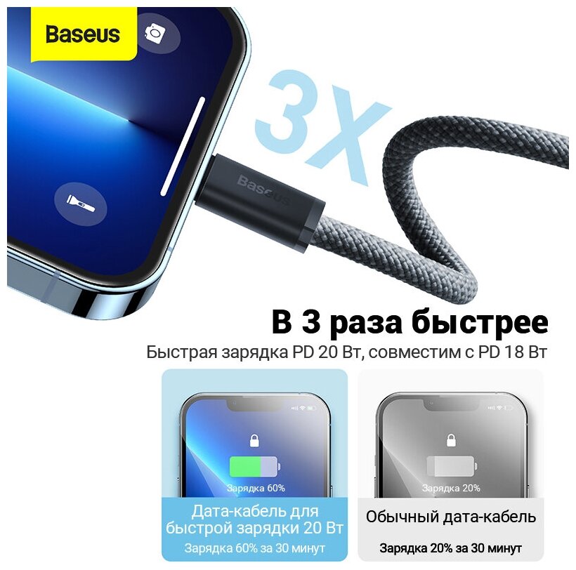 Кабель Baseus Dynamic Series Type-C to Lightning 8pin 20W "быстрая зарядка" (CALD000016) 1 метр