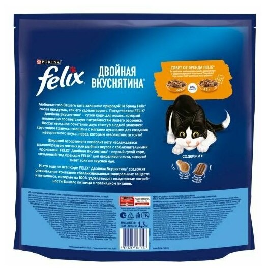 FELIX Сухой корм Felix "Двойная вкуснятина", для кошек, птица, 1.3 кг