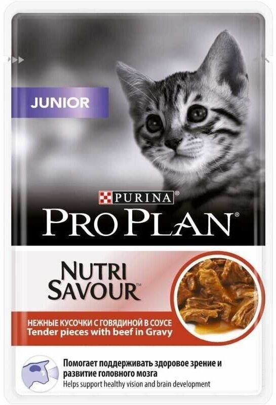 Pro Plan Nutrisavour Junior пауч для котят (кусочки в соусе) Говядина, 85 г. упаковка 26 шт